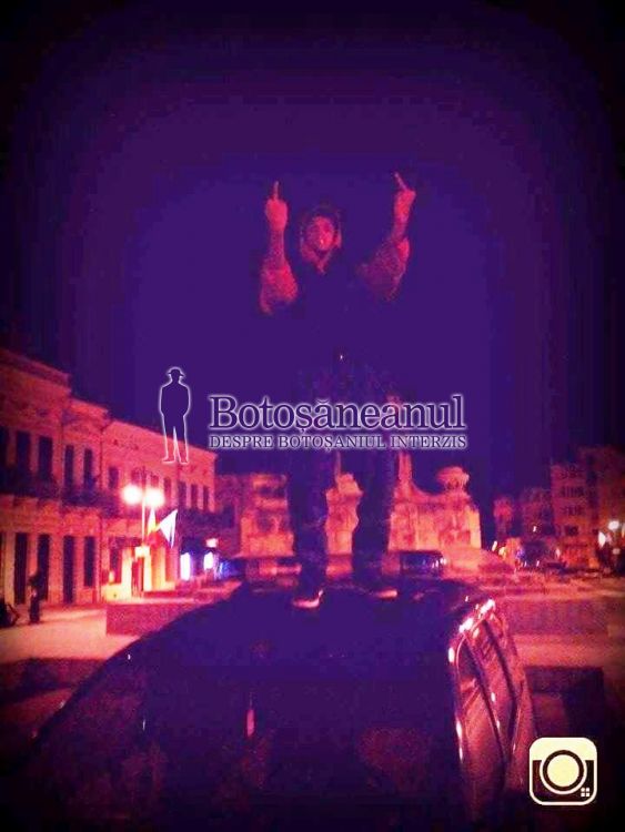 Pentru că la lăsarea serii, șmecherii care fac legea în Centrul Istoric continuă să sfideze. Este și cazul unui tânăr, Eduard B. din informațiile noastre, care a călărit mașina Poliției Locale, la propriu. Mai apoi, probabil ca să demonstreze cât de viteaz e, s-a urcat cu picioarele pe capota autoturismului și cu degetele mijlocii de la ambele mâini, ridicate. M..e pare să transmită din fotografie cel și-a pus amicii să-l pozeze și care rânjește insolent la adresa Poliției din Botoșani și-a întregului oraș, care în majoritatea-i, se supune legilor în vigoare.