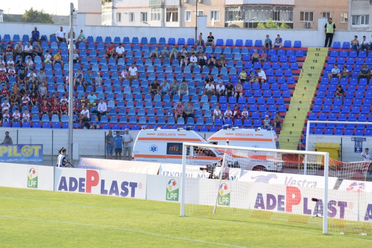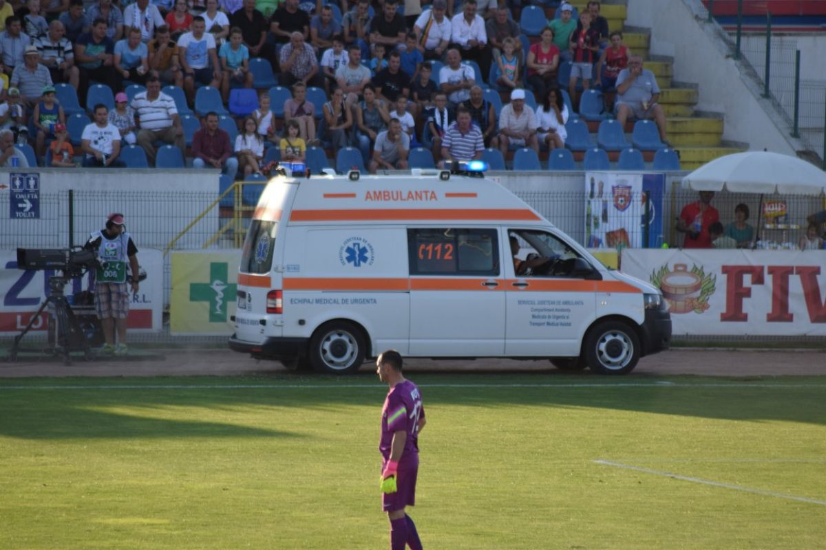 A intrat pe gazon și cu sirena pornită a plecat spre Spitalul Județean Mavromati. În timp ce medicii îi acordau primul ajutor suporterului care și-a pierdut cunoștința, FC Botoșani deschidea scorul.