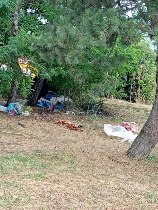 Astăzi, 18 iulie 2025, în jurul orei 12:00, pe durata desfășurării activităților specifice în zona aflată în curs de amenajare de pe versantul Pacea, polițiștii locali au observat multe deșeuri abandonate și un adăpost improvizat alături.