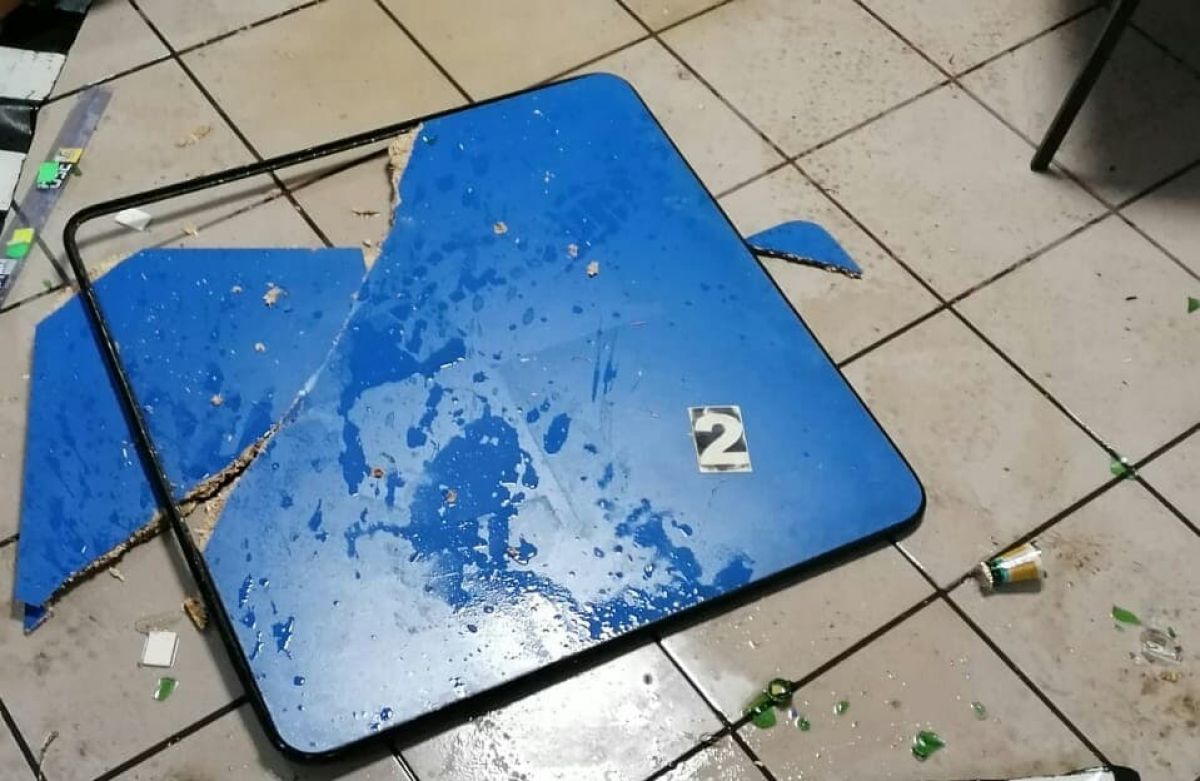 Printre altele, a rupt un scaun și a spart o sumedenie de sticle de bere.