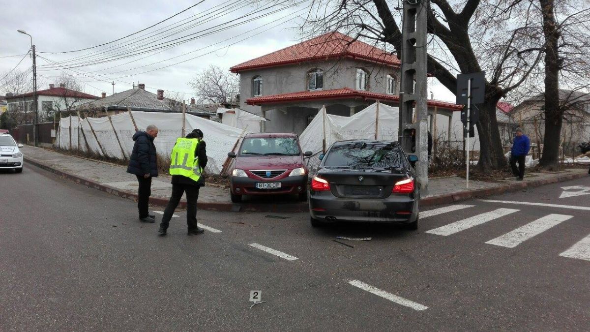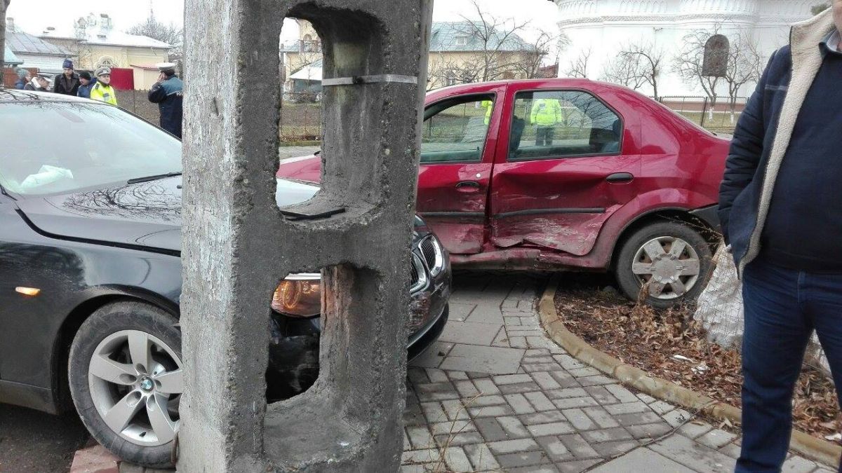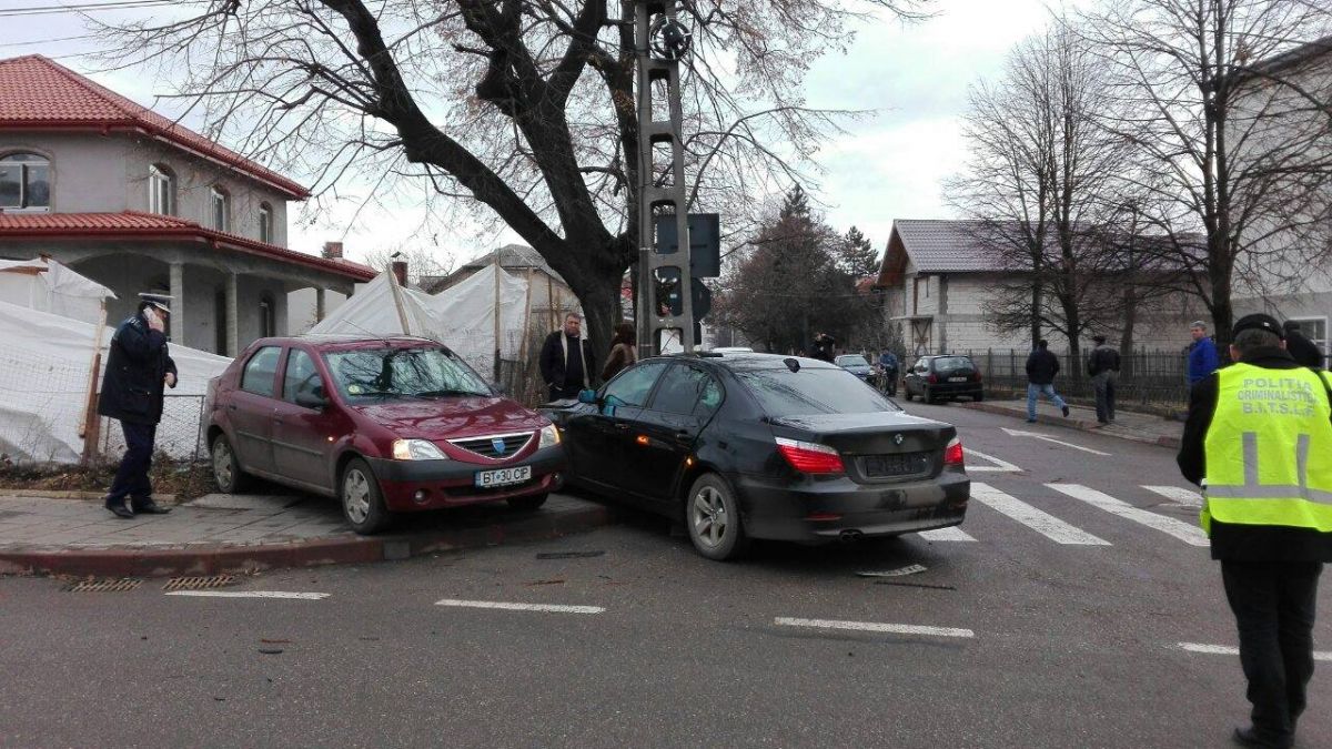 Un autoturism Dacia Logan circula dinspre strada Tudor Vladimirescu spre fostul cinematograf Luceafărul. La un moment dat, de pe o stradă secundară, a ieșit un autoturism BMW care l-a impactat din plin. În urma coliziunii, ambele autoturisme au ajuns pe partea opusă a drumului, lângă un stâlp. În autoturismul Logan se afla Ciprian Burlacu, polițist în cadrul Serviciului de Ordine Publică al IPJ Botoșani și care a ajuns la spital cu mai multe lovituri la cap. Din primele cercetări ar fi vorba de o neacordare de prioritate a autoturismului BMW, care a intrat în intersecție fără a se asigura. (G.E.)