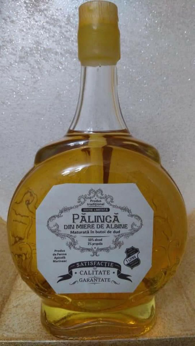 „E un produs doar pe bază de miere de albine și ceară, vorbesc despre căpăceală pe care o las la fermentat și de acolo scot pălincă. Ea iese în prima mână undeva la 70 de grade, dar o reduc la 50. E o pălincă ușor de băut pentru că este dulce dacă este provenită din miere. Conține și 3% propolis. E o rețetă pe care o știu de la străbunicul meu.”,
