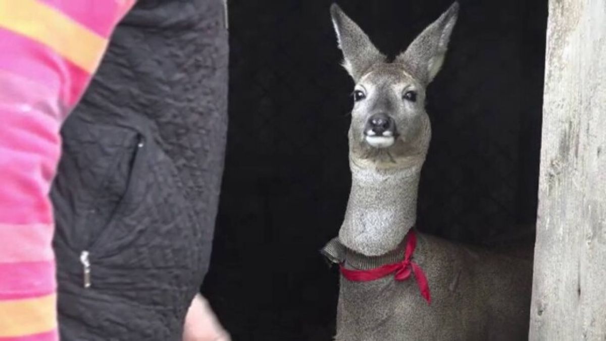 Pentru că bietul animal abia mai mișca i s-a făcut milă de el, l-a adus acasă și l-a hrănit cu lapte. În scurt timp, puiul și-a revenit și a putut să se țină singur pe picioare. Fiind crescut cu multă dragoste, căprioara s-a atașat de salvatorul lui, iar acum îl urmează prin toată gospodăria.