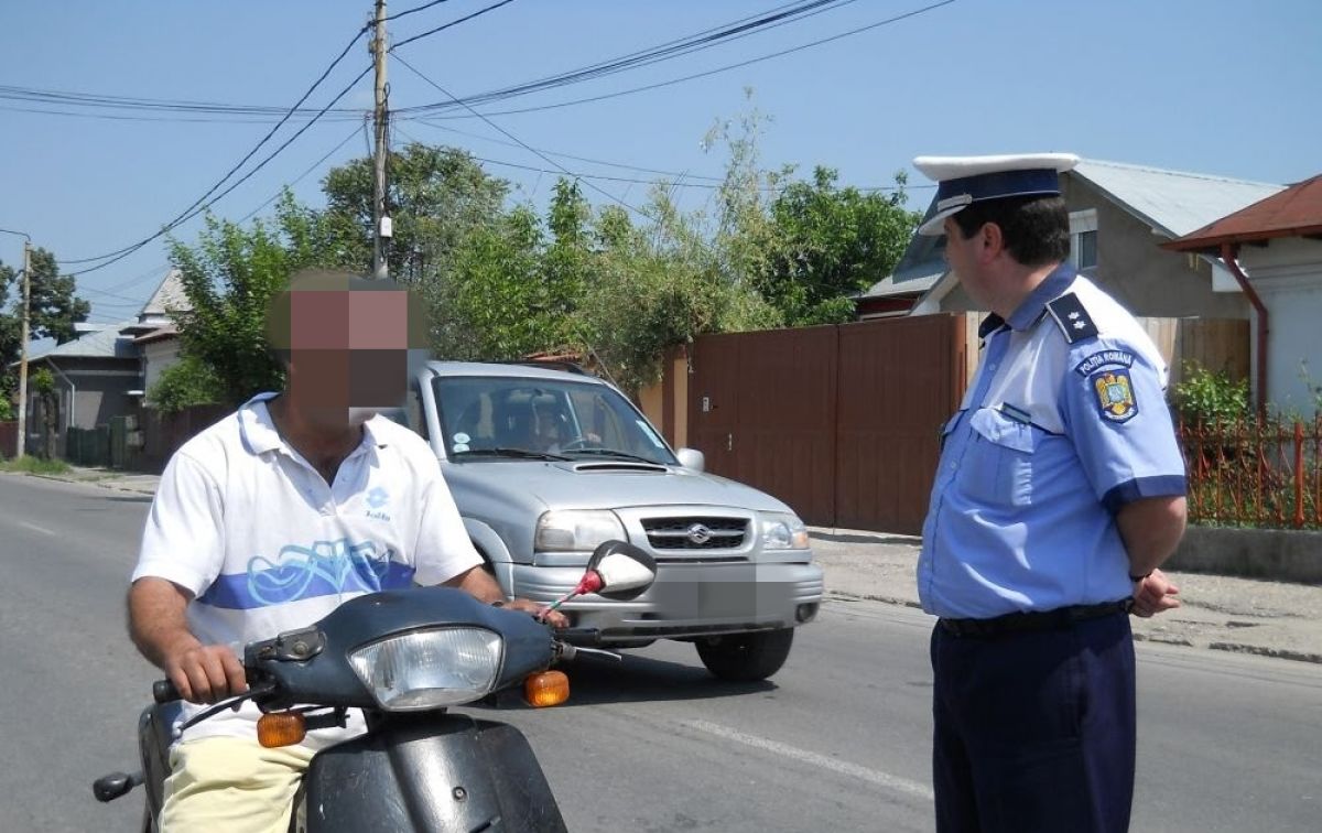 Un bărbat de 76 de ani, a fost oprit de polițiști în timp ce conducea un motoscuter.