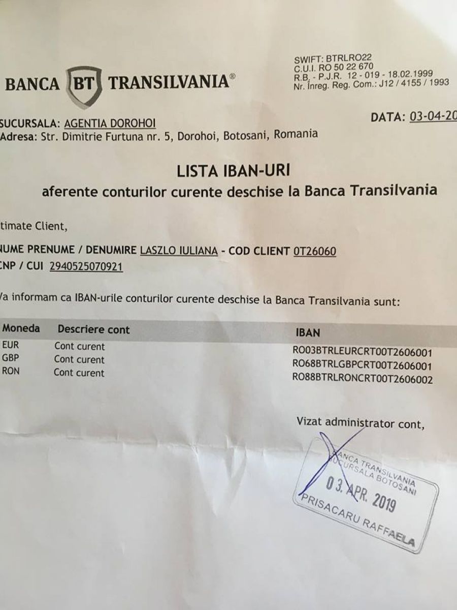 Conturile deschise pentru Levente Laszlo pot fi văzute în fotografiile de mai jos.