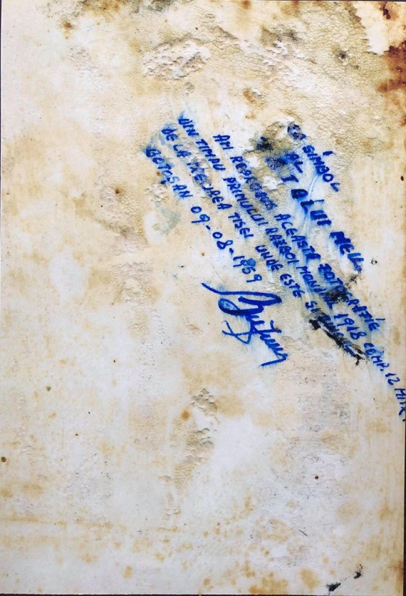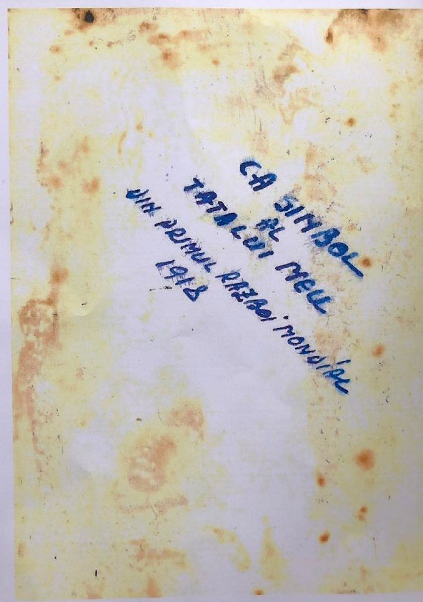 ”Aceste două fotografii sunt ale tatălui meu care e de loc din Broșteni și-a fost și ofițer până în 1964. Bunicul meu a luptat în Primul Război Mondial, în compania 14, ceea ce se adeverește prin scrisul tatălui meu, transmis celorlalte generații, ca amintire. Tatăl meu a fost plutaș pe Bistrița și de la vârsta de 19 până la 23 de ani aproape, a fost în Armata Română și a creat România Mare, împreună cu toți ceilalți, care și-au dat viața pentru această țară”,