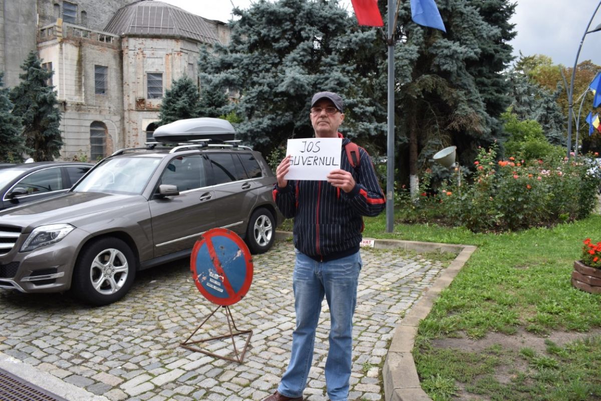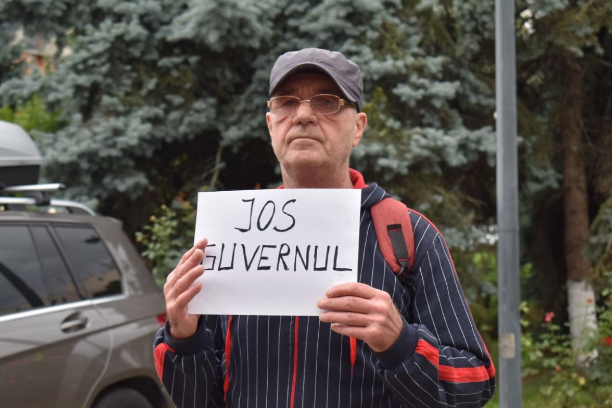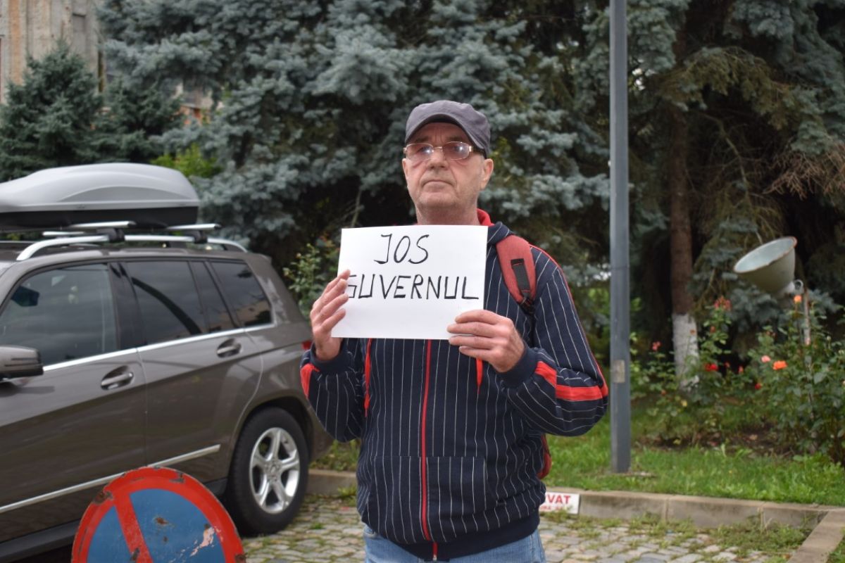 „Eu, ca un cetățean, protestez împotriva a tot ce face Guvernul acesta, ne-a îndatorat, ne-a cutare... ei au luat toate guvernele la zero, nu am avut datorii când a murit Ceaușescu. Fiecare guvern s-a îndatorat și ei încearcă să se astupe unul pe altul, plătesc din datorii din banii noștri și eu nu sunt mulțumit. Locuri de muncă nu sunt, au luat împrumutul ăla mare și am zis că o să facă ceva. La pensii nimic, la copiii noștri nimic. La copiii noștri ce le rămâne, să plătească datorii... vedeți că se scumpesc toate, iar veniturile... eu sunt șomer, am timp, dar nu pot să protestez, sunt bolnav”,