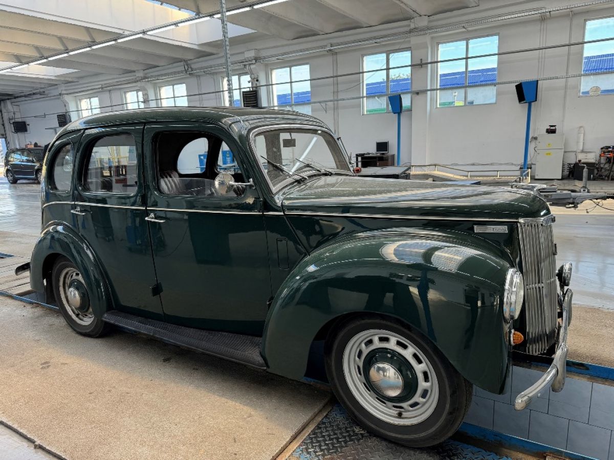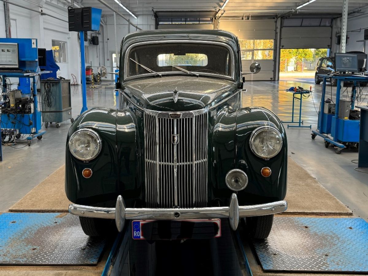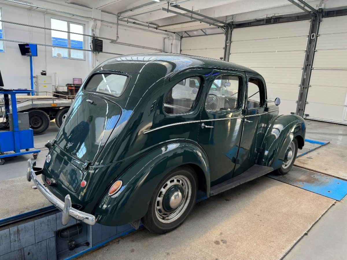 Este vorba de un Ford Prefect, automobil fabricat tocmai în 1948.