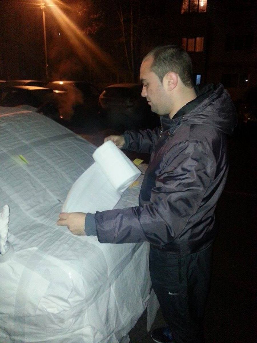 Un botoșănean s-a trezit cu mașina ”îmbrăcată” în hârtie de ziua lui - FOTO cât de haios arată