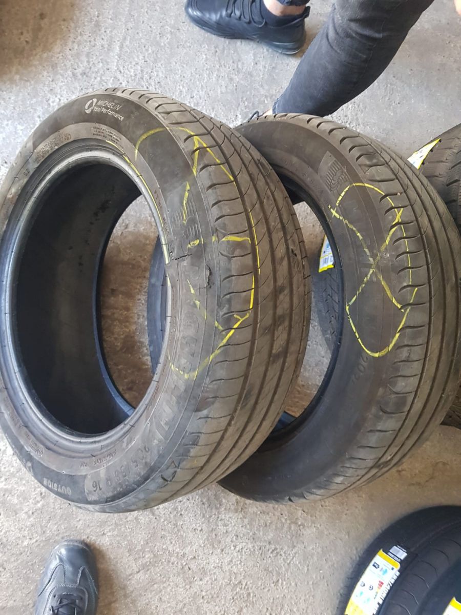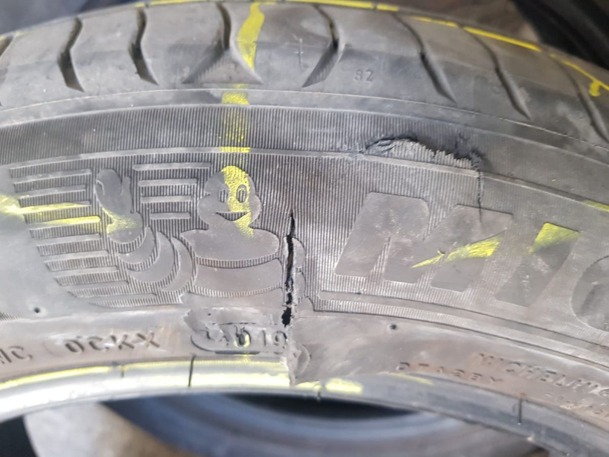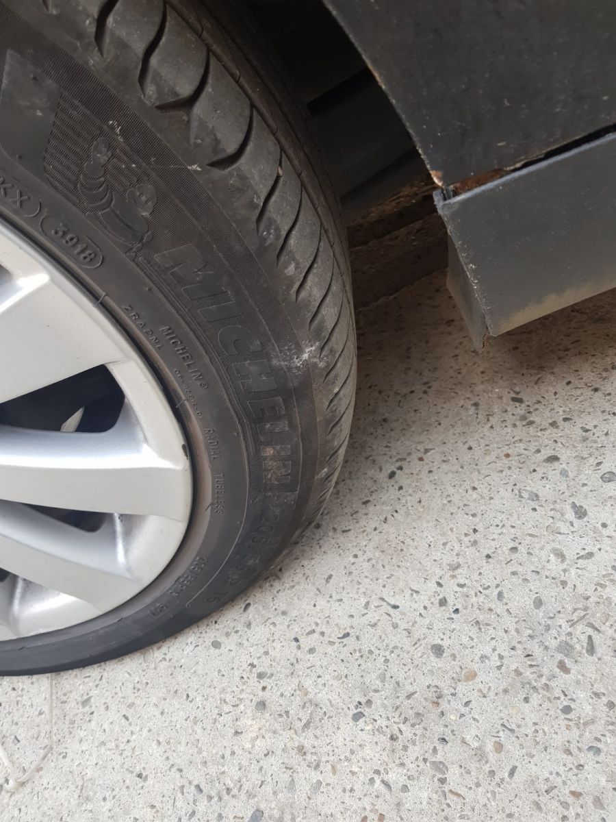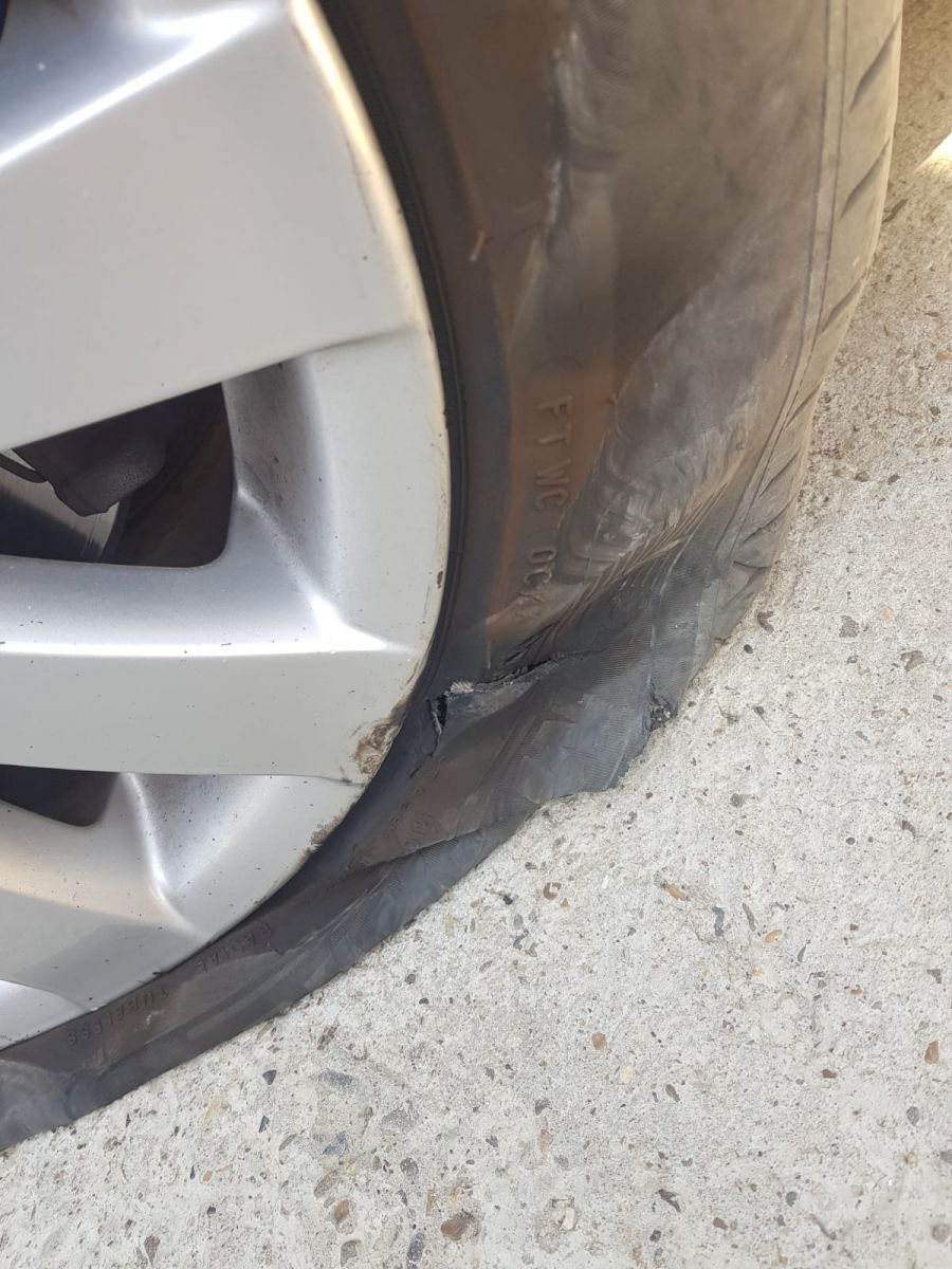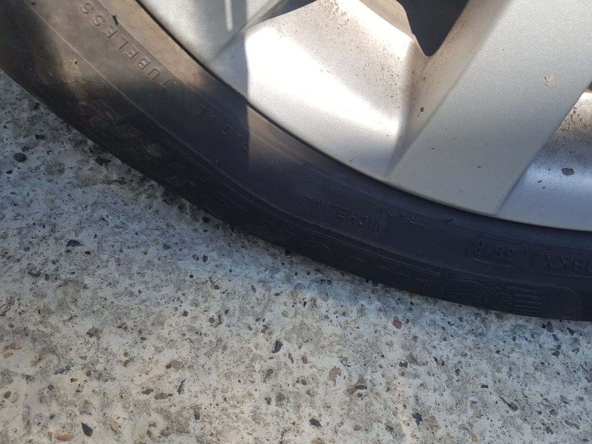 A intrat într-o groapă și și-a tăiat două anvelope fiind nevoit să le arunce și să cumpere altele noi, întrucât cele vechi nu au mai putut fi reparate.