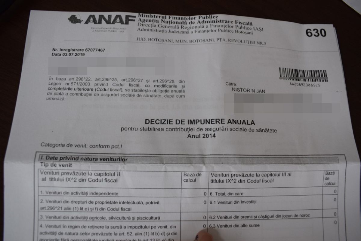 A pățit-o și un botoșănean a cărui poveste însă a avut final mai fericit. Jan Nistor nu a avut bani de dat la „Finanțe”, însă a primit un plic acasă din care a reieșit ulterior că are de primit o sumă de... 2 lei.