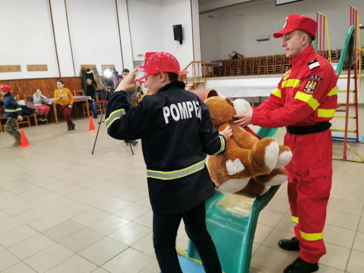 În timp ce adulții au învățat cum să prevină accidentele casnice sau cum să acorde primul ajutor în astfel de situații, cei peste 150 de copii au participat la o activitate interactivă cu rol educativ în domeniul situațiilor de urgență, condusă de mascota inspectoratului, pompierul Sam. Echipați cu costume de intervenție, micii pompieri au trecut printr-un tunel, au salvat ursuleţul sau cățelul de pluș de pe tobogan, au alergat printre jaloane şi au stins un incendiu imaginar. Au fost răsplătiți cu dulciuri și multe aplauze.