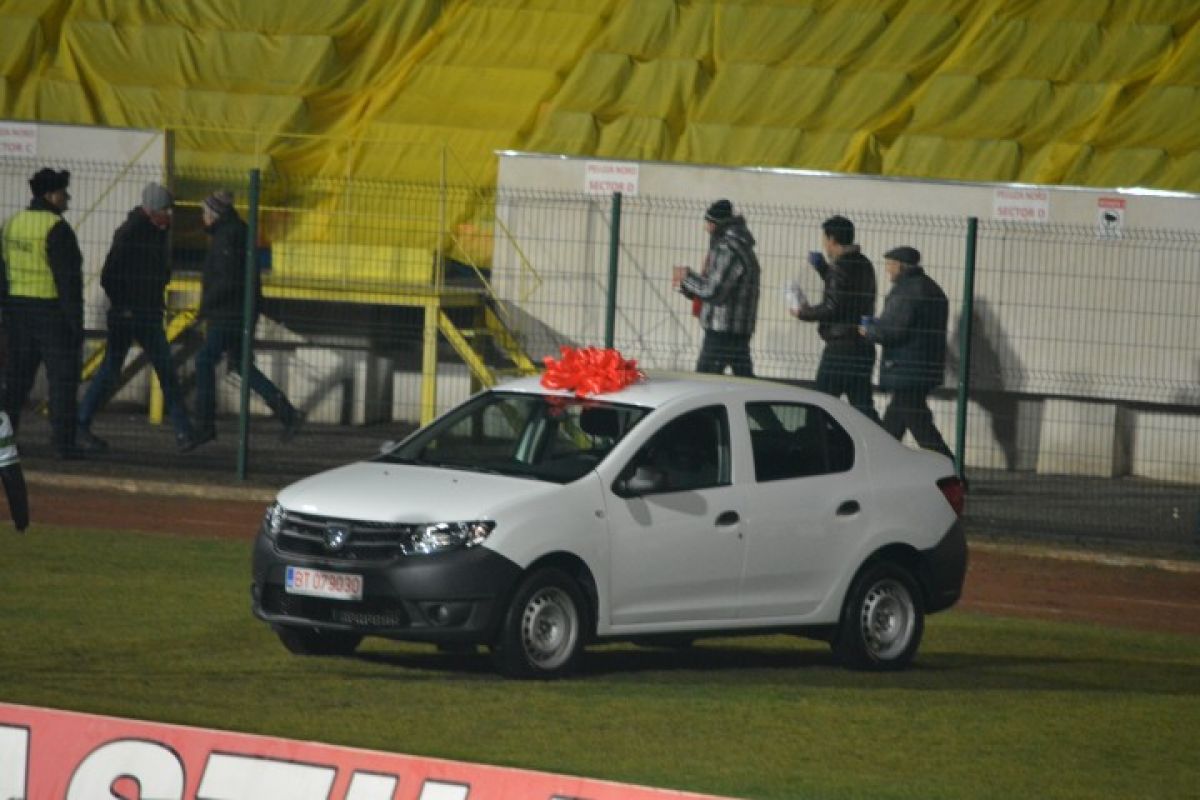În pauza meciului FC Botoşani – Concordia Chiajna (3 – 0 după primele 45 de minute) a avut loc tragerea la sorţi pentru atribuirea Daciei Logan promisă suporterilor.