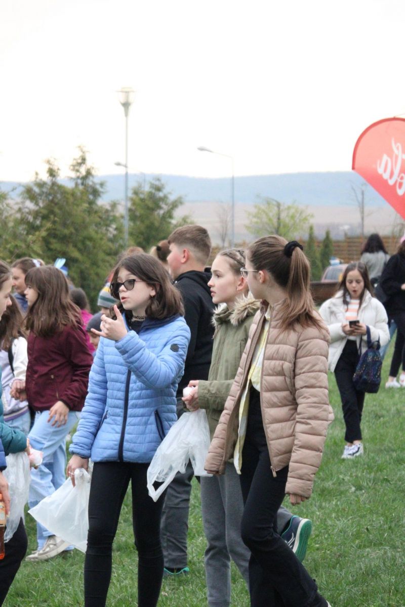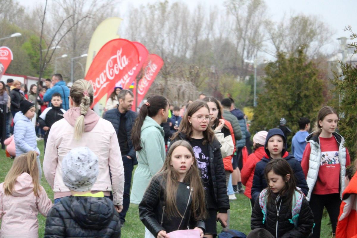 Tinerii voluntari de la ”Simbio” au ascuns ouăle de ciocolată pe un traseu delimitat, iar participanții la inedita competiție au trebuit să le descopere.