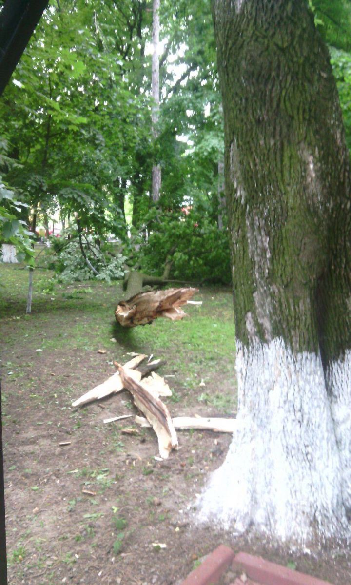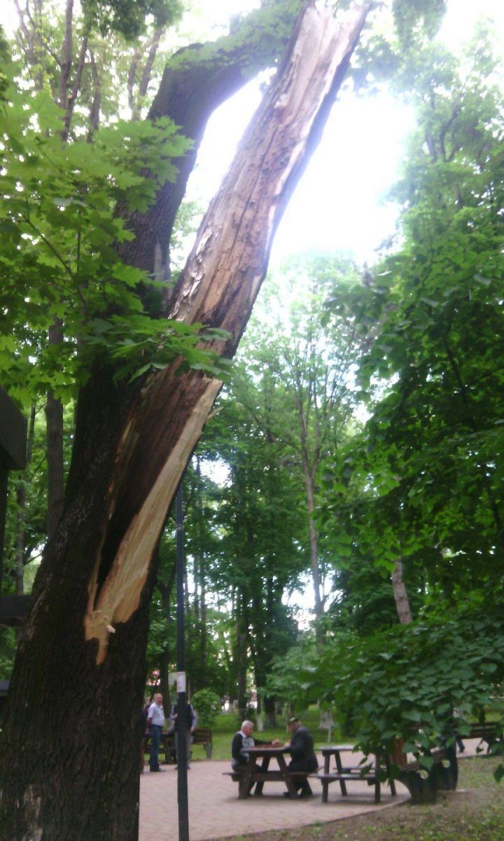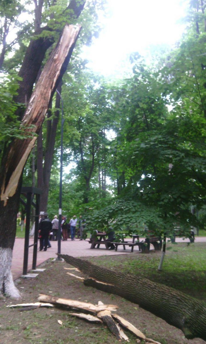 O creangă uriașă dintr-un tei s-a desprins de pe copac și s-a prăbușit pe spațiul verde. Teiul se afla în imediata apropiere a aleii șahiștilor.