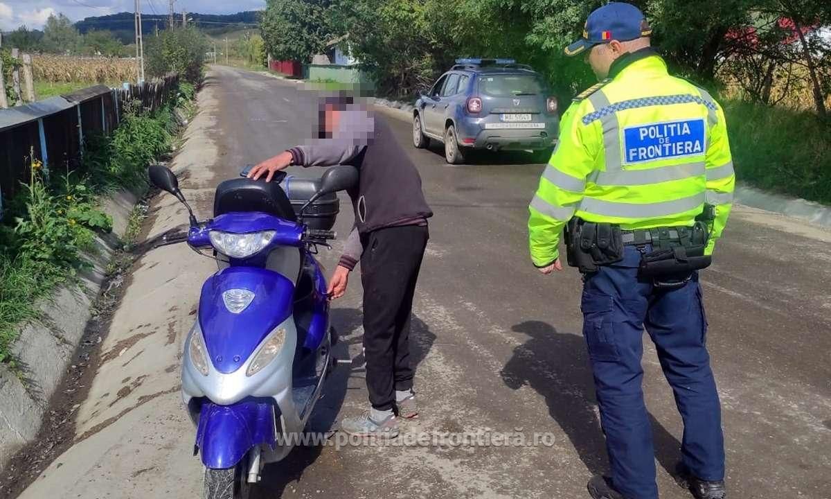 Polițiștii de Frontieră din cadrul Sectorului Poliţiei de Frontieră Dorohoi, pe timpul unei misiuni specifice, au depistat un tânăr care conducea un motoscuter, deşi nu deţinea permis de conducere.