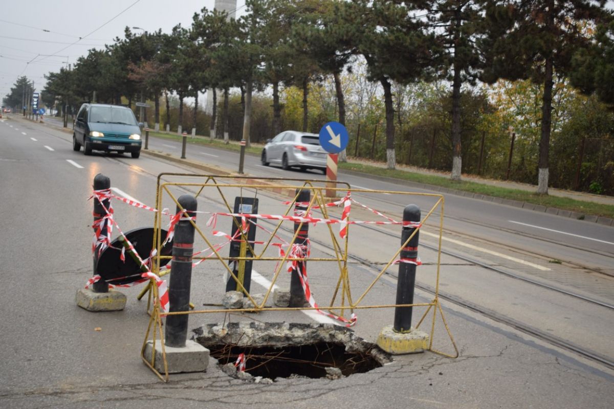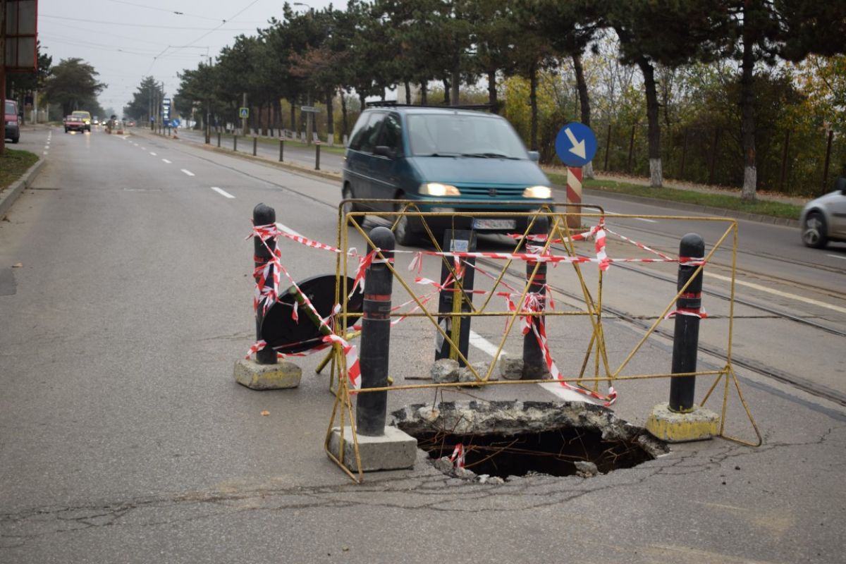 ”Am primit o informare din partea colegilor de la Direcţia Edilitare care au constatat că pe Calea Naţională, în Zona Industrială, în dreptul societăţii Isimax s-a produs o prăbușire în carosabil fapt ce necesită o intervenţie urgentă pentru remedierea acesteia, deoarece este pusă în pericol siguranţa în trafic pe magistrala municipiului, unde au acces şi autovehicule de mare tonaj”,