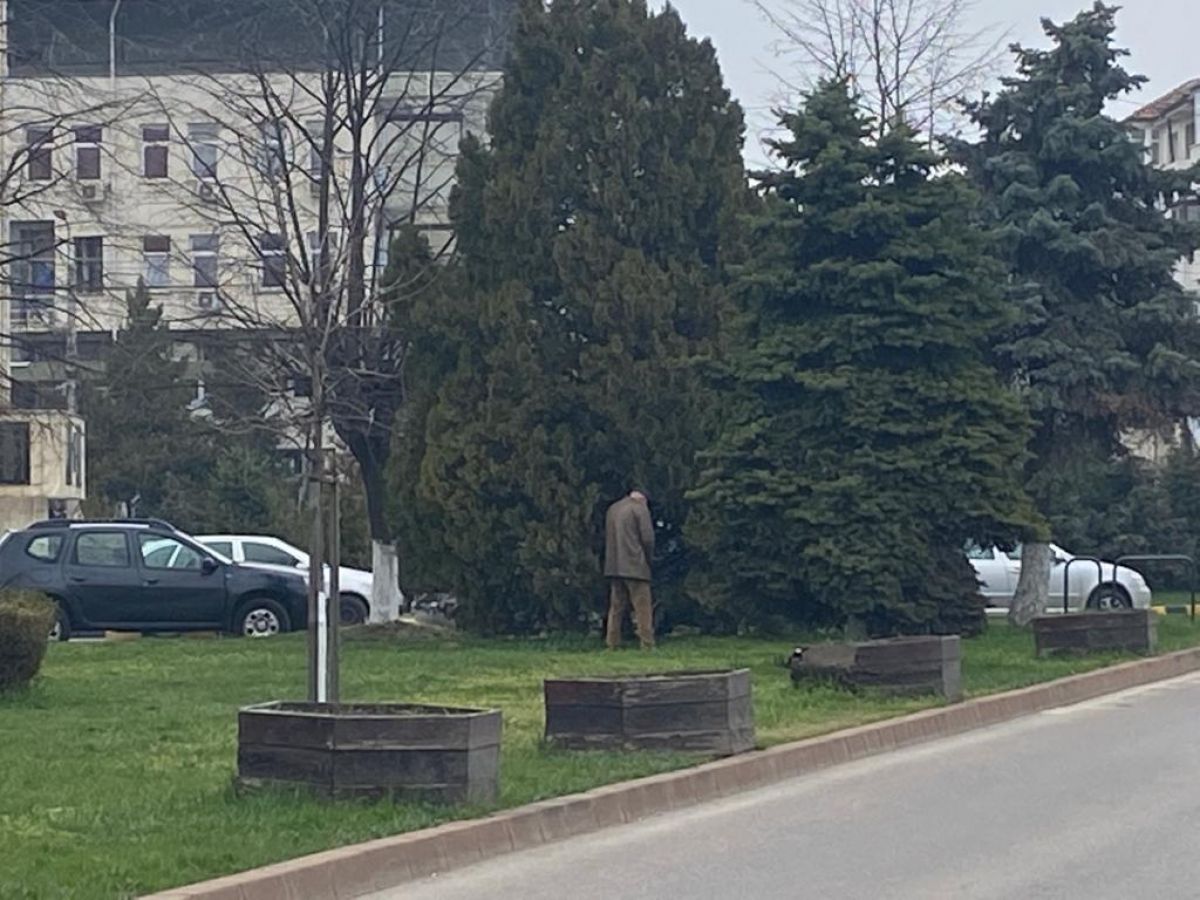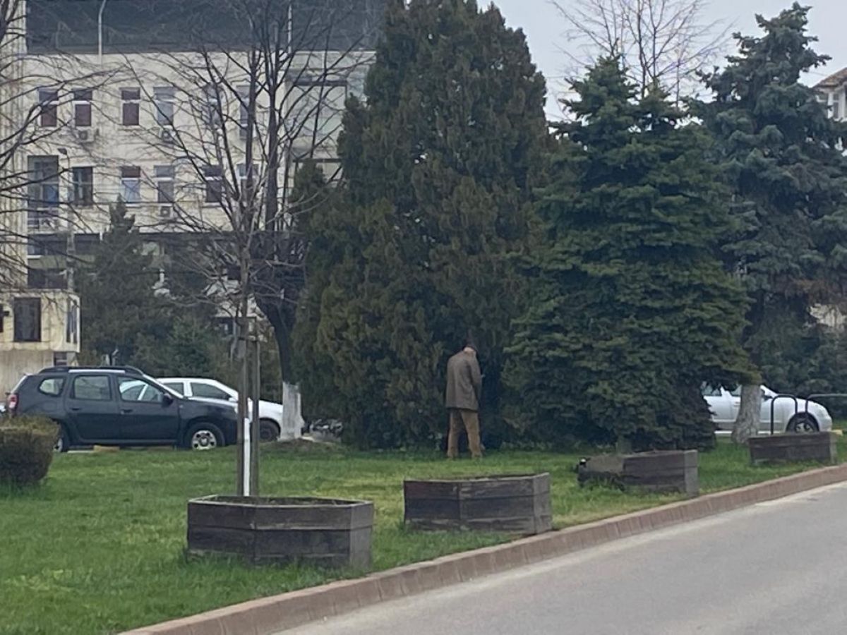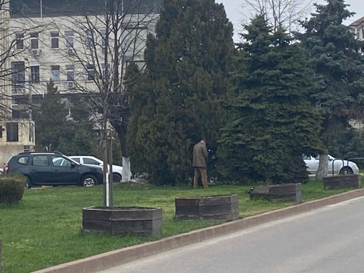 Respectivul botoșănean, îmbrăcat frumos într-un costum de culoare maronie, a fost surprins în timp ce urina pe brazii din micul părculeț aflat în fața clădirii în care funcționează Casa de Pensii și Agenția Județeană de Plăți și Inspecție Socială.
