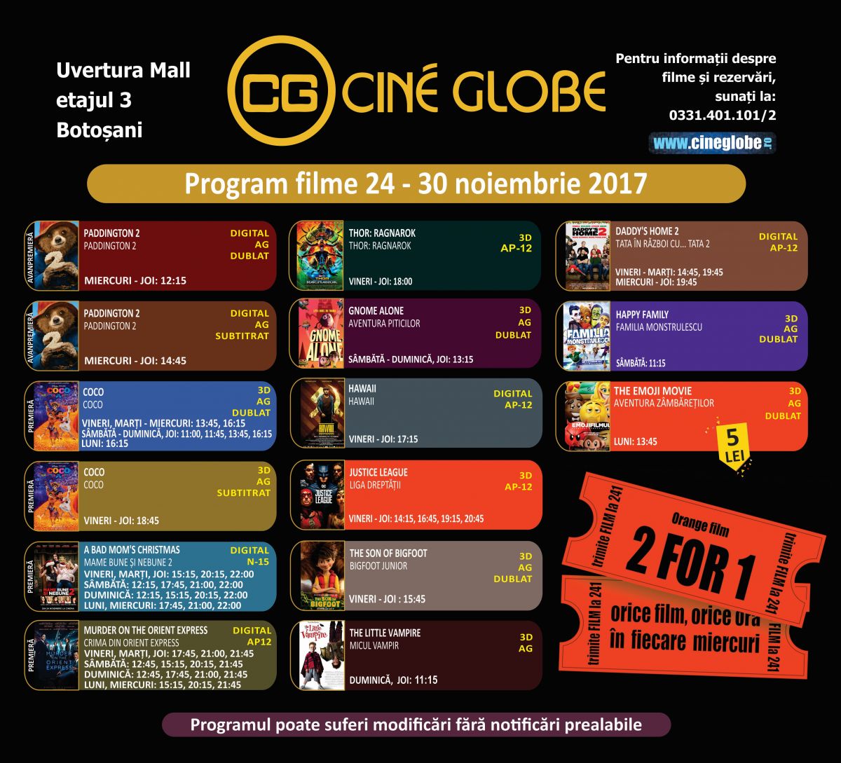 Vezi mai jos PROGRAMUL complet al săptămânii la Cine Globe