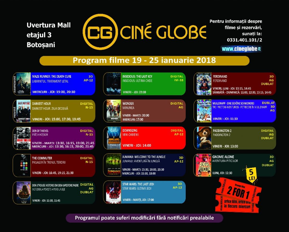 De asemenea, iubitorii de film de la Botoşani pot vedea în avanpremieră pelicula Labirintul-Tratament Letal sau în premieră Frăţia Hoţilor.