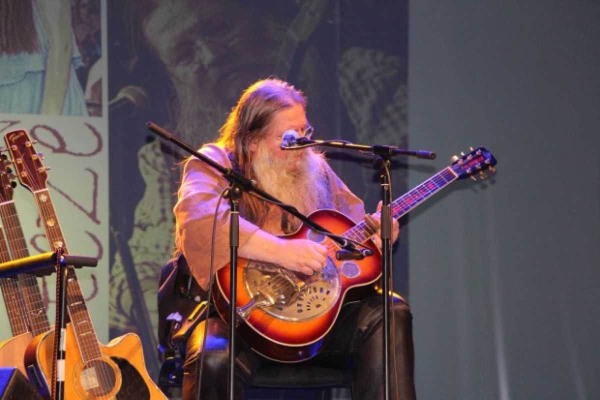 Bluesmanul a cărui înfățișare te duce cu gândul la poveștile ecranizate ale lui JRR Tolkien,Vali Răcilă folosește în concertele sale cea mai veche chitară din țară, una care a împlinit 115 ani.