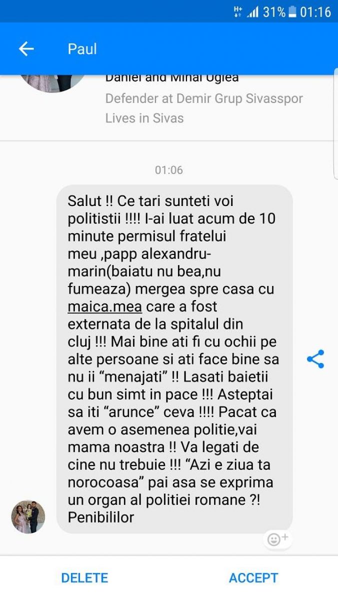 Alexandru Marin Papp își ducea mama acasă, după ce a externat-o din spital, dar a trecut pe roșu, fiind oprit de poliție. Fratele fotbalistului Paul Papp a fost sancționat contravențional întrucât conducea pe Bld. 21 Decembrie, iar la intersectia cu Piața Avram Iancu a trecut pe culoarea rosie a semaforului si aproape a acrosat autospeciala politiei.