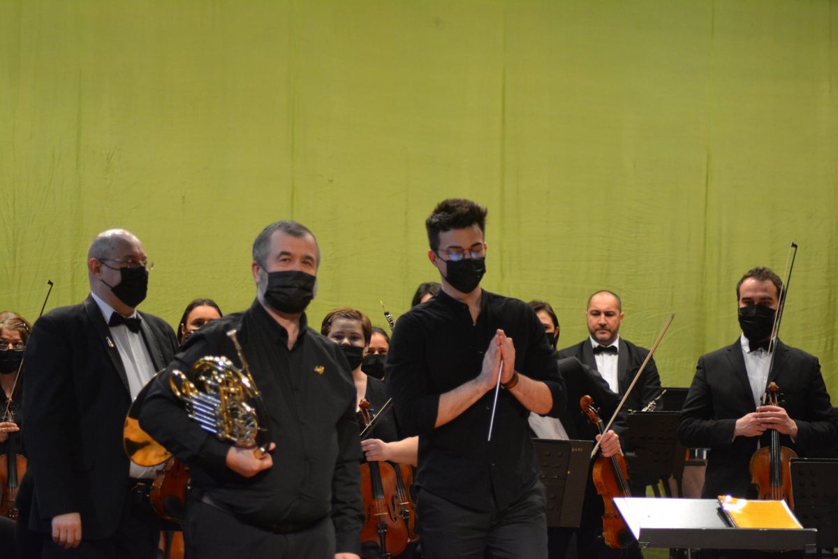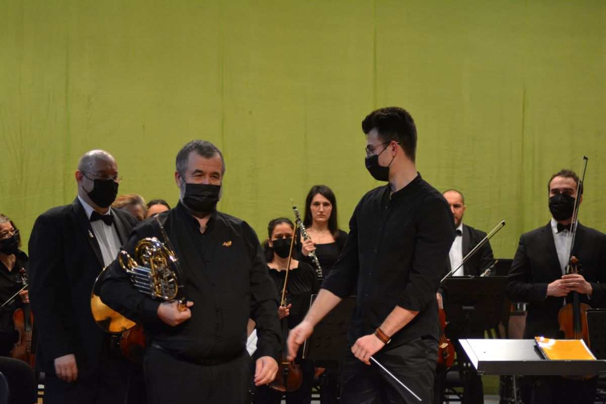 Concertul de vineri a fost și unul mai puțin obișnuit, aducând în fața publicului meloman un element inedit și deopotrivă emoționant: dirijorul s-a aflat pentru prima dată în fața unei orchestre profesioniste, Petre Florentin Gîscă debutând astfel pe scena de la Botoșani. Mai mult, solistul concertului a fost nimeni altul decât tatăl dirijorului, cornistul Petrea Gîscă.