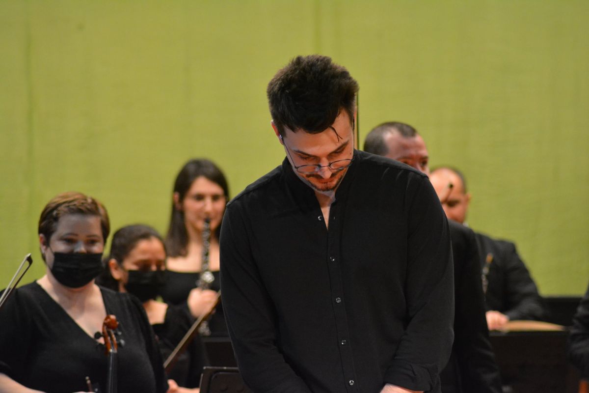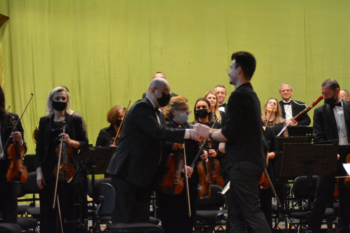 -Absolut! Nu s-a schimbat deloc acest fapt. Seara aceasta a fost o bornă, o etapă din viața mea la care m-am gândit mereu de când am început dirijatul. Sunt deja în anul IV la Conservatorul din Iași, sub îndrumarea maestrului Dumitru Goia. Învățăm tehnică dirijorală, avem doi pianiști... Dar când vii în fața unei orchestre, deja e next level. Ne însușim teoretic tehnica dirijorală, dar acum suntem în fața unei orchestre cu o îndelungată experiență și foarte frumoasă cum este orchestra de la Botoșani, cu care trebuie să comunicăm, să interacționăm nu doar prin gest, ci și prin cuvânt. Or asta nu învățăm neapărat la școală... Pe lângă această interacțiune verbală trebuie să fim și bine pregătiți. E puțină presiune pentru cineva aflat la început. Să nu greșesc, să nu îi fac pe ei să greșească! Sper că i-am ajutat în actul interpretativ, pentru că un dirijor trebuie să fie de ajutor acolo unde este nevoie.