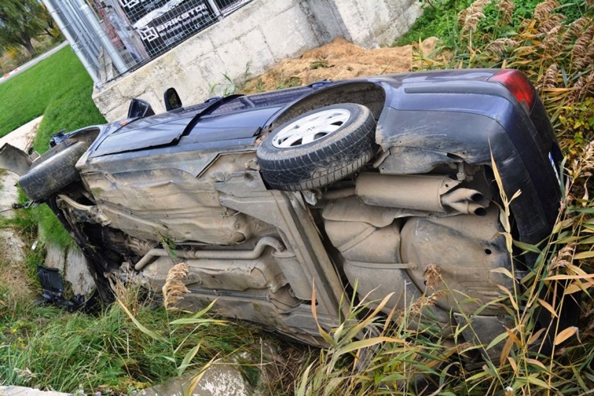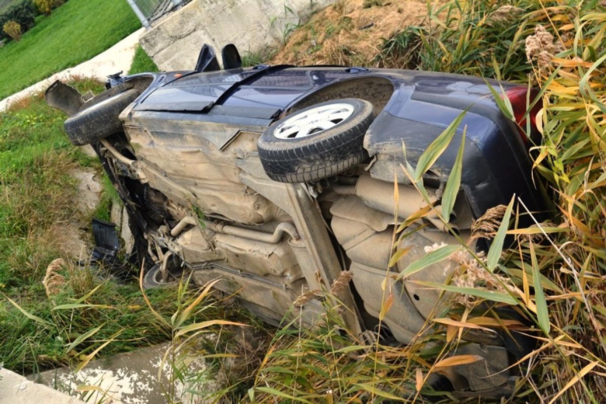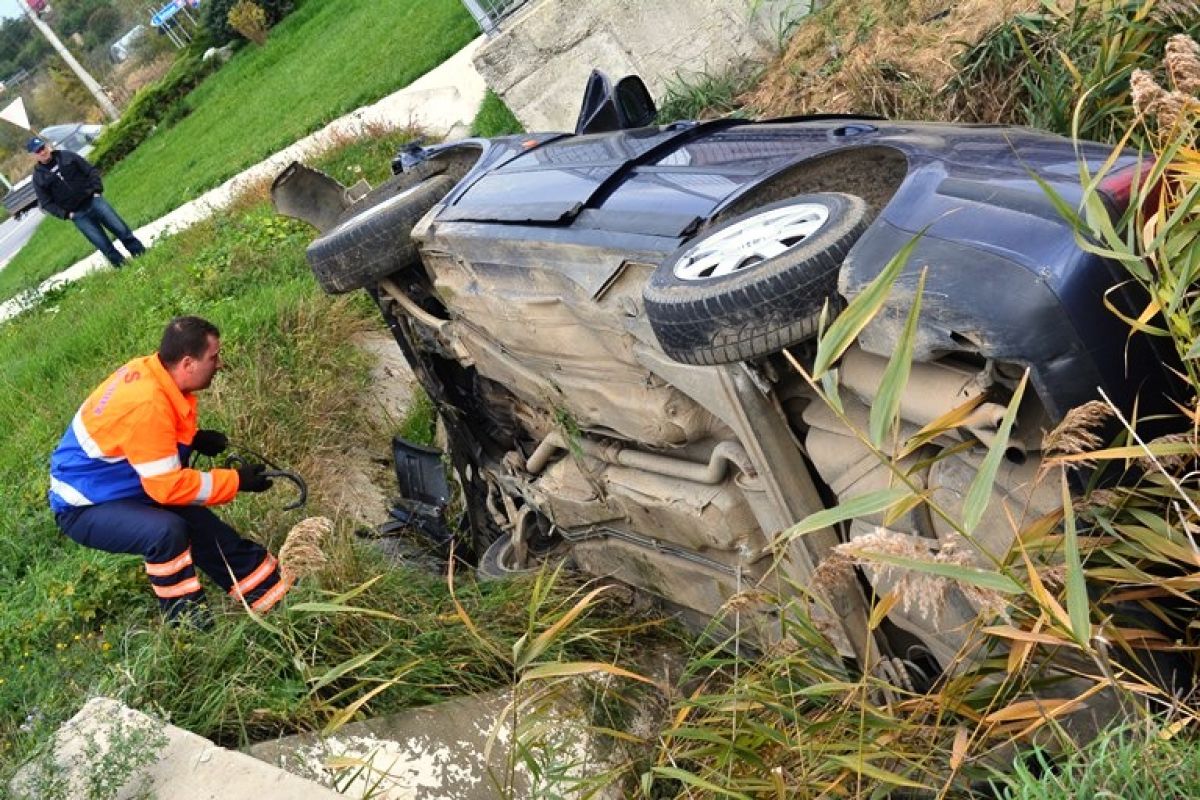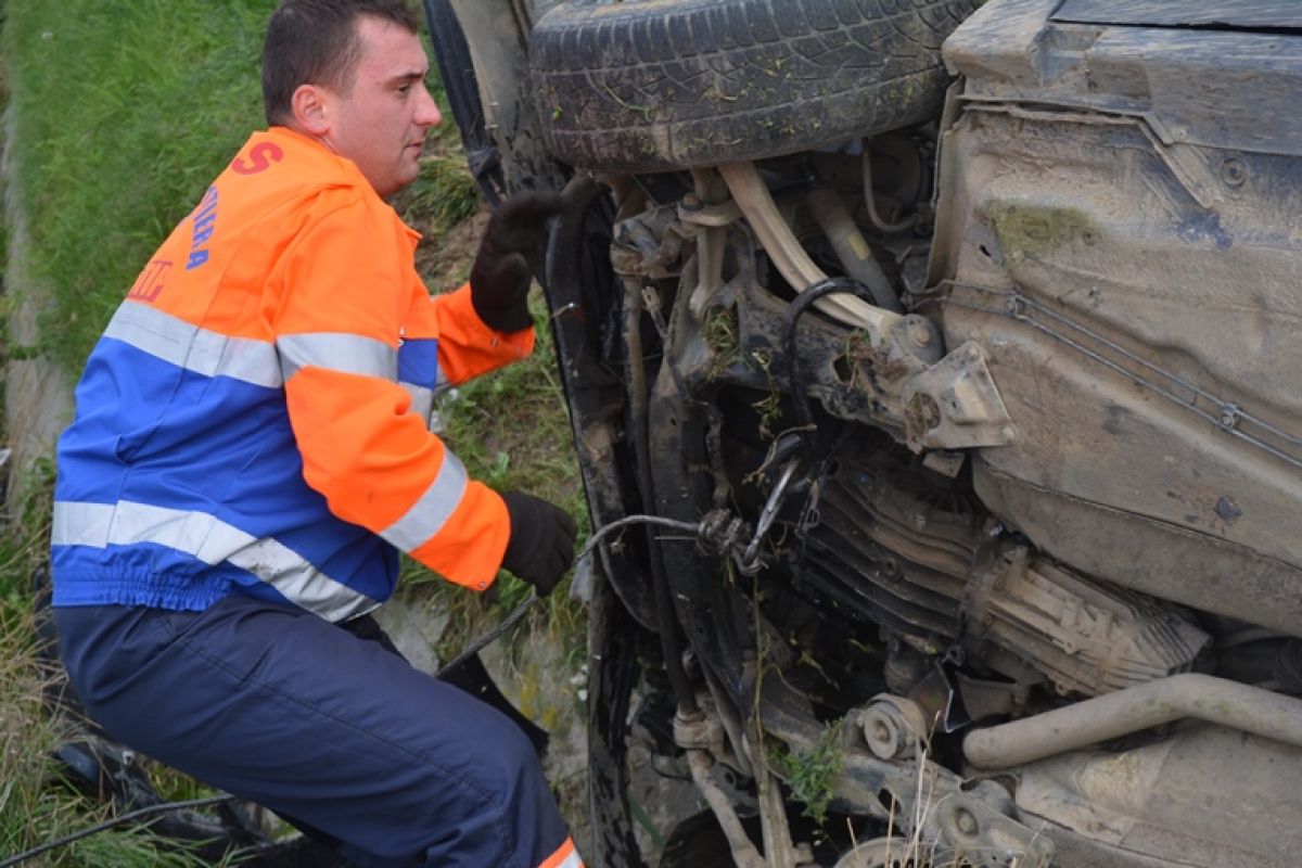 Passat răsturnat în șanț la Lebăda de un tânăr șofer – FOTOGALERIE