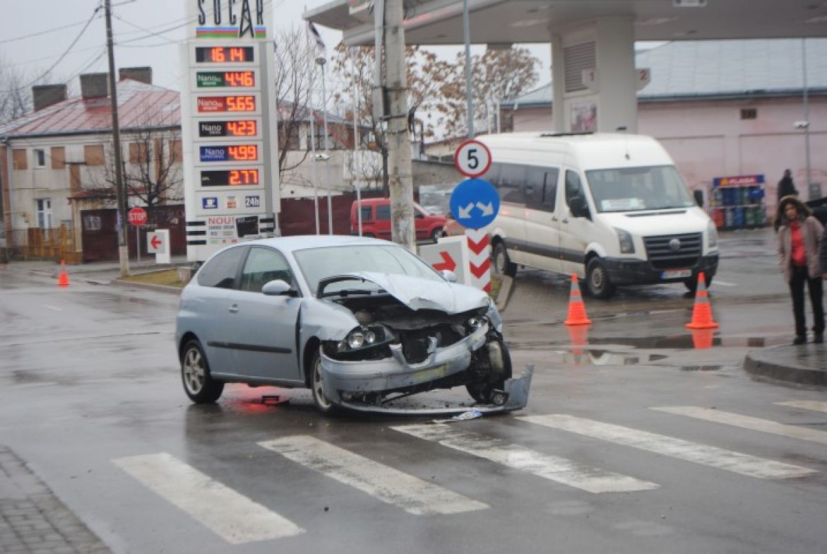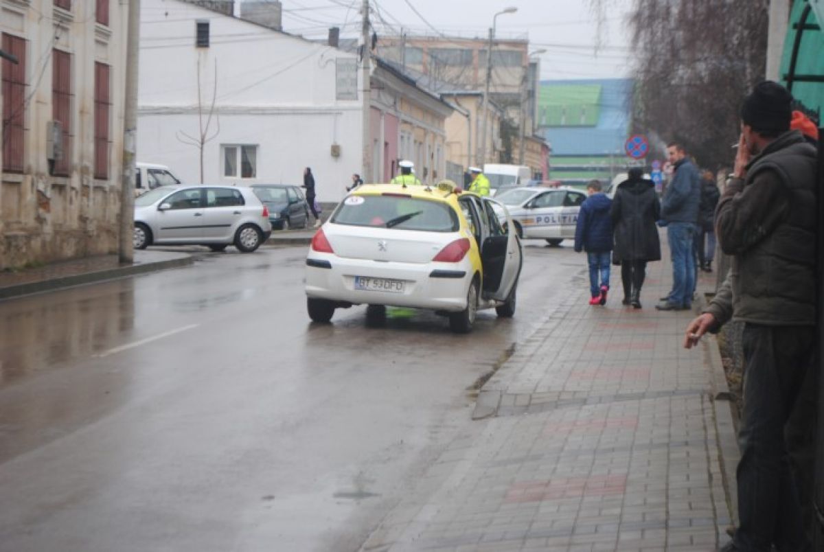 D.B., un tânăr în vârstă de 27 de ani, se deplasa cu un autoturism marca Seat, cu numere de Suceava, pe strada Peneș Curcanul. Ajungând la intersecția cu strada Independenței, el nu a acordat prioritate de trecere unui autoturism în regim de taxi. În urma coliziunii puternice taxiul a fost avariat serios în partea dreapta laterală, iar mașina de Suceava a fost distrusă în partea din față. De asemenea, pe carosabil au sărit bucăți de sticlă din ambele mașini. Polițiștii rutieri aflați la fața locului efectuează cercetări. (Ș.V.)