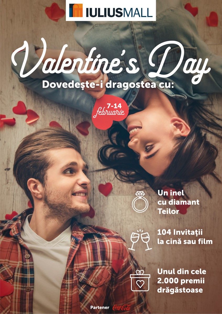 Orele rămase până la Valentine`s Day le oferă clienților Iulius Mall șansa de a câștiga premii care transmit mesaje de dragoste. Cei care cumpără de minimum 100 de lei din magazinele lor preferate pot participa la campania „Dovedește-i dragostea!”. Cei care doresc să se înscrie trebuie să se prezinte la Centrul Info cu bonurile fiscale, unde vor fi invitați să rotească ruleta premiilor, care le va dezvălui cadoul câștigat. Primii 200 de participanți vor fi răsplătiți cu: o cină romantică, bilete la cinema, vouchere pentru sesiuni de răsfăț, bombone de ciocolată, sticle de vin și băuturi răcoritoare.