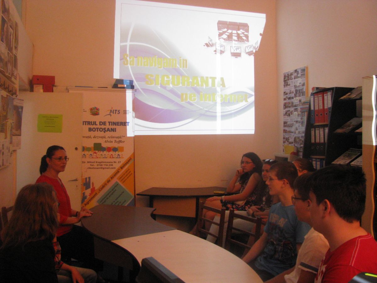 ”Prieteni în spațiul virtual – siguranță și respect pe Internet” este denumirea proiectului finanțat de Ministerul Tineretului și Sportului prin Direcția Județeană de Sport și Tineret -Centrul de Tineret Botoșani, prin intermediul căruia 15 tineri au fost de instruiți pe tematica utilizării Internetului în mod responsabil și sigur.
