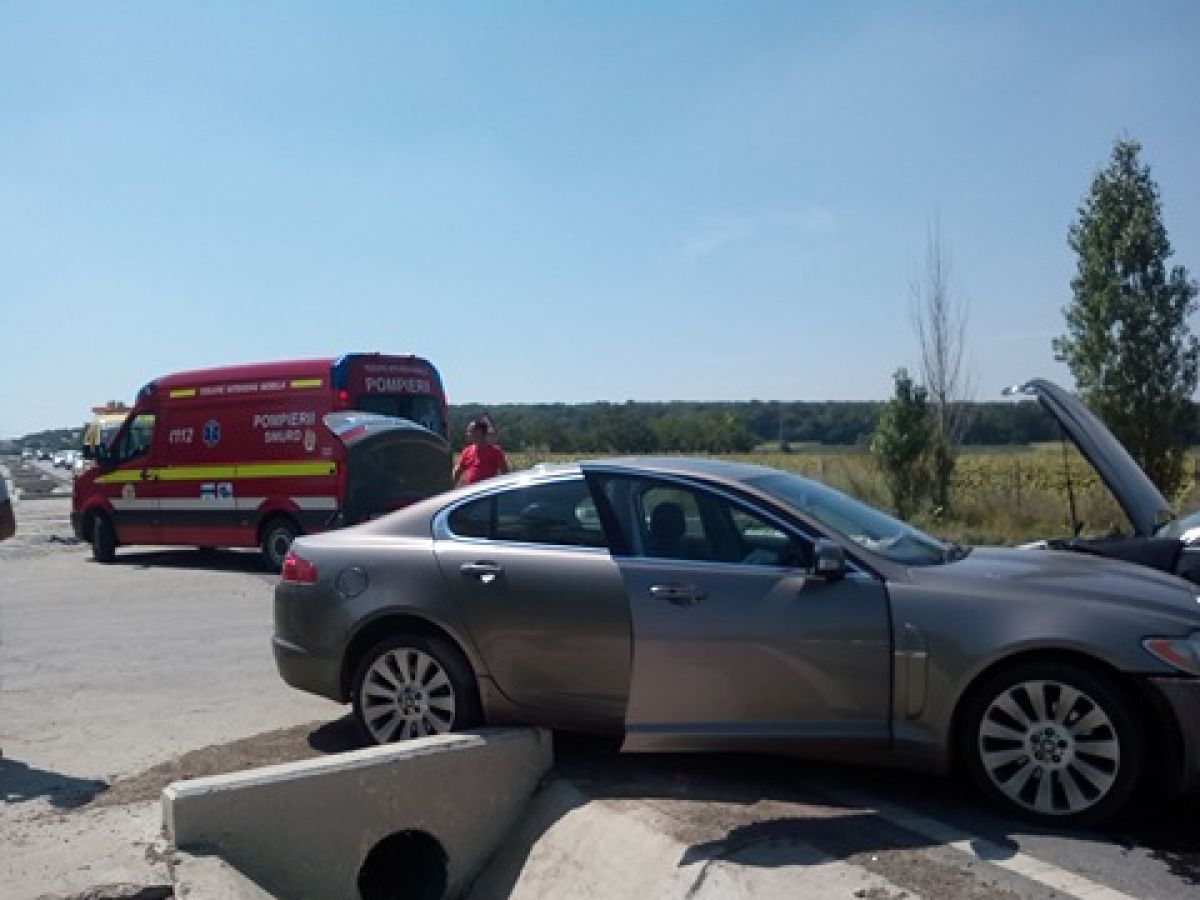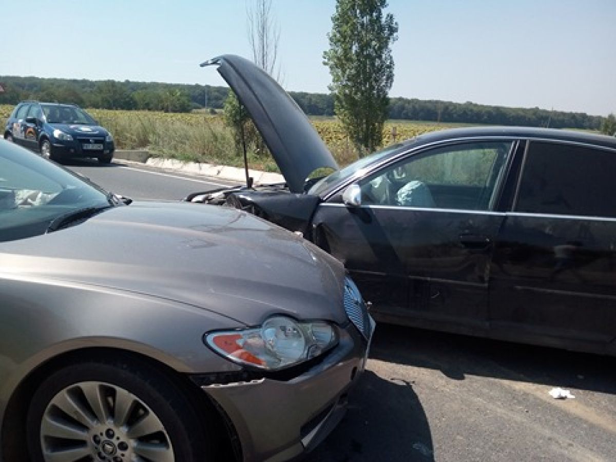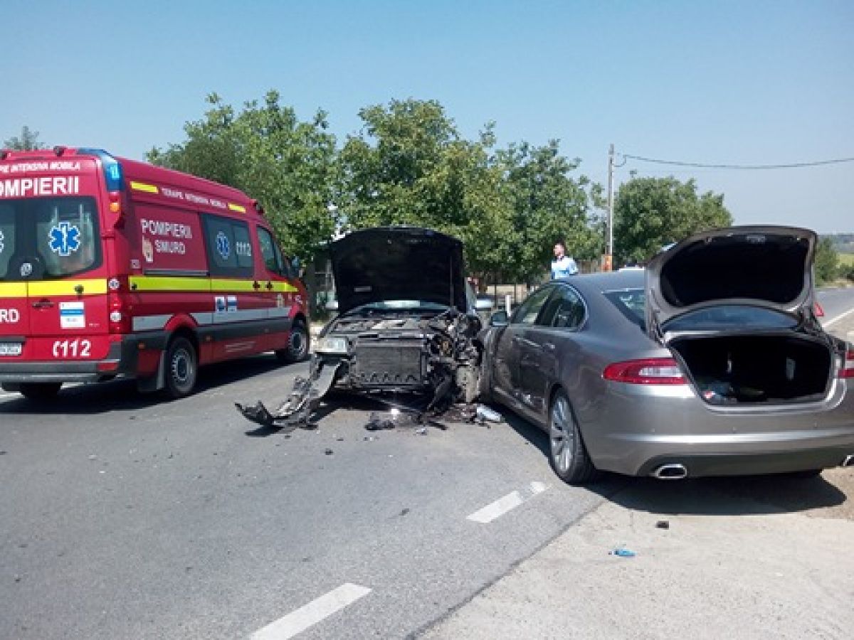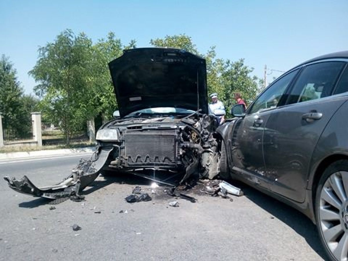 Un autoturism marca Jaguar a izbit puternic un Audi care se afla pe drumul cu prioritate. Jaguarul ieşea din curtea unui service. Din primele informaţii se pare că şoferul care se afla la volan nu s-a asigurat şi a izbit astfel cealaltă maşină.