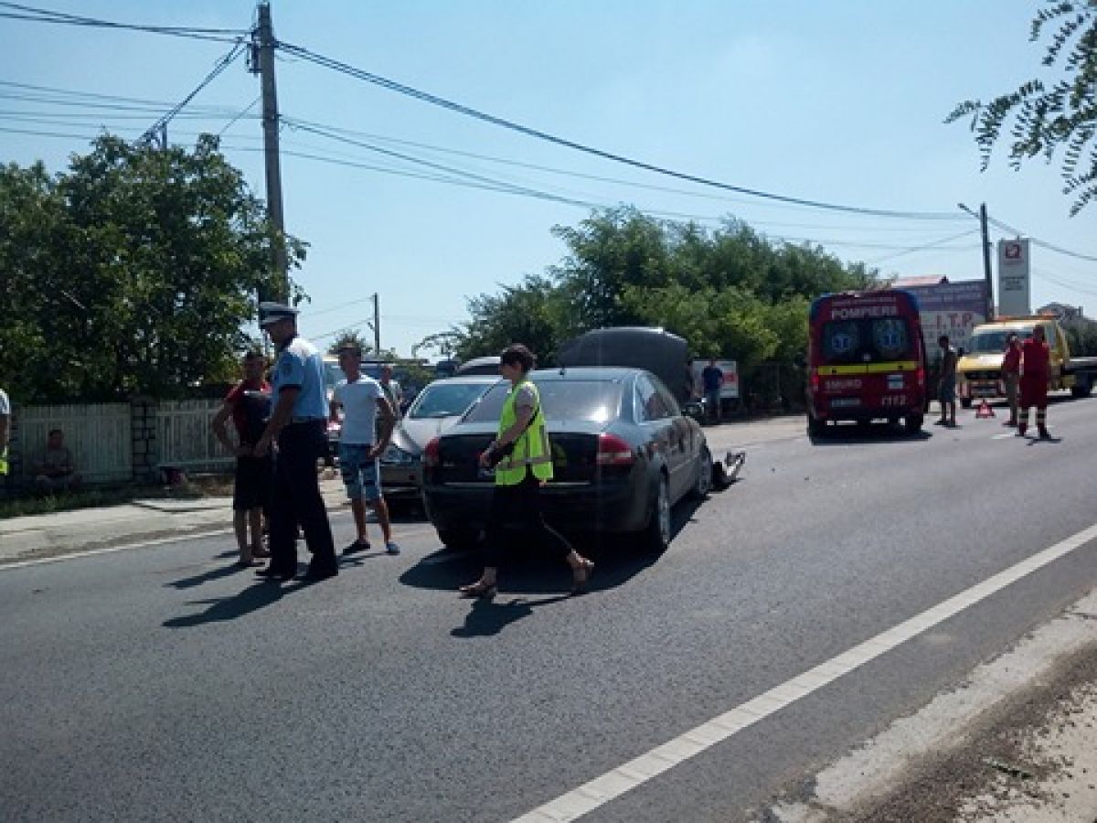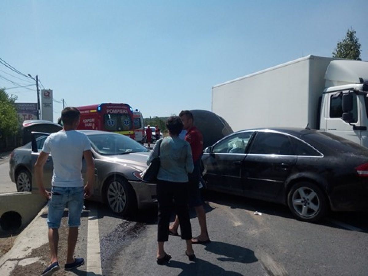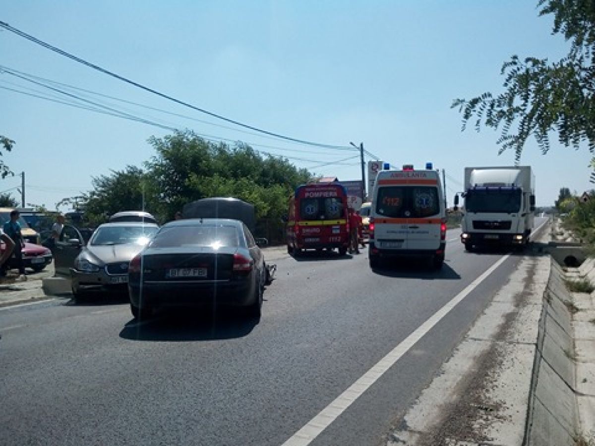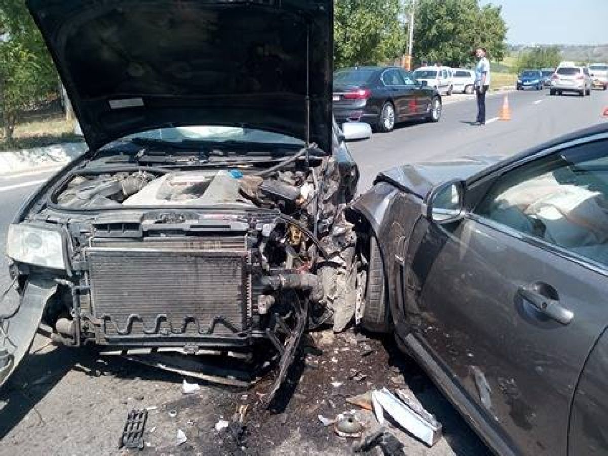 Un autoturism marca Jaguar a izbit puternic un Audi care se afla pe drumul cu prioritate. Jaguarul ieşea din curtea unui service. Din primele informaţii se pare că şoferul care se afla la volan nu s-a asigurat şi a izbit astfel cealaltă maşină.