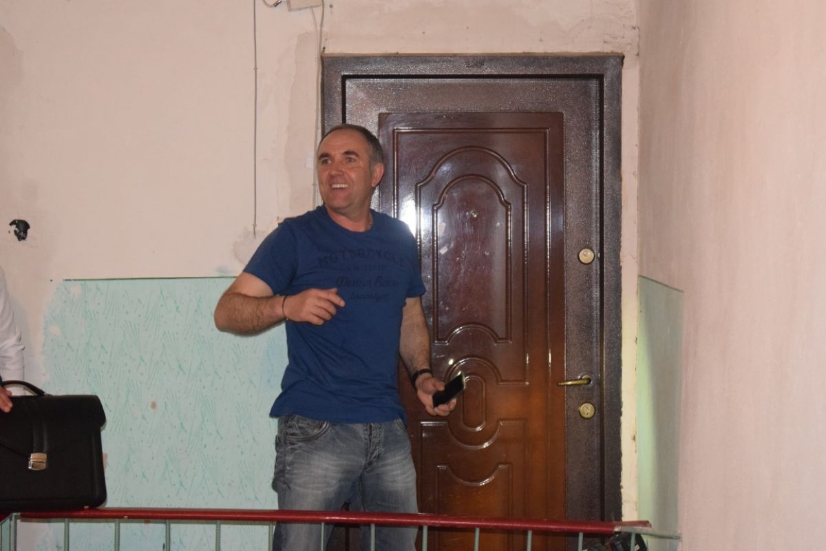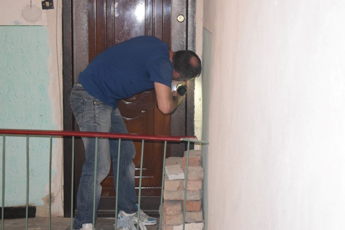 Evident, știind că urmează să fie evacuat, datornicul nu era acasă. Ușa metalică încuiată și sus și jos.