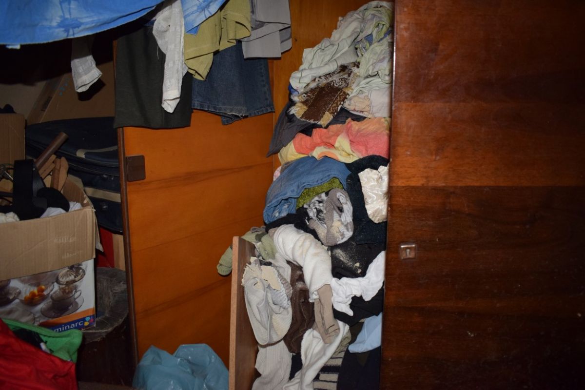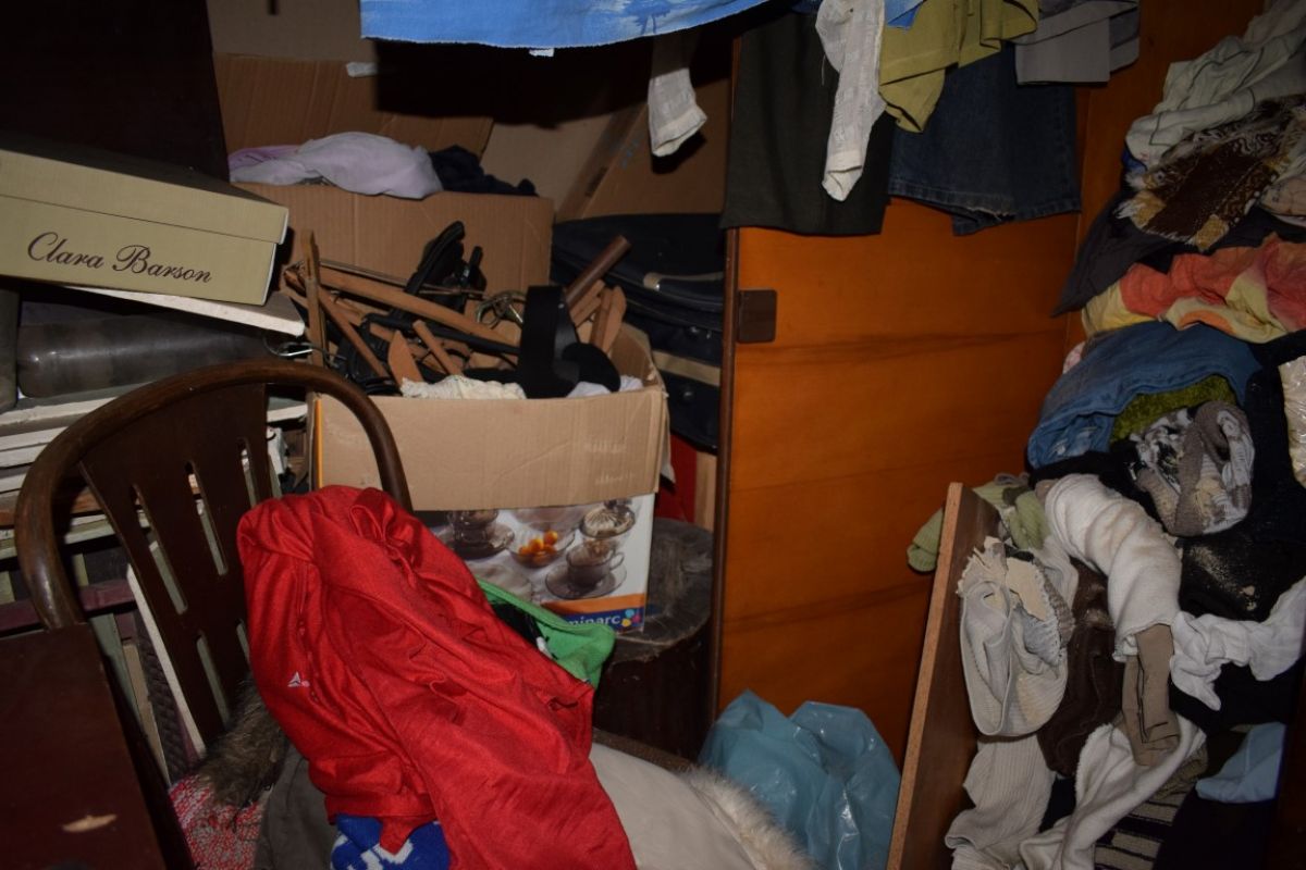 Odată cu deschiderea ușii, tabloul din interior, aproape identic cu alte evacuări, tot șoca. Executorul a găsit componente de mobilă aflate în stare de deteriorare, haine împrăștiate peste tot, jucării de copil și alte tot felul de lucruri.
