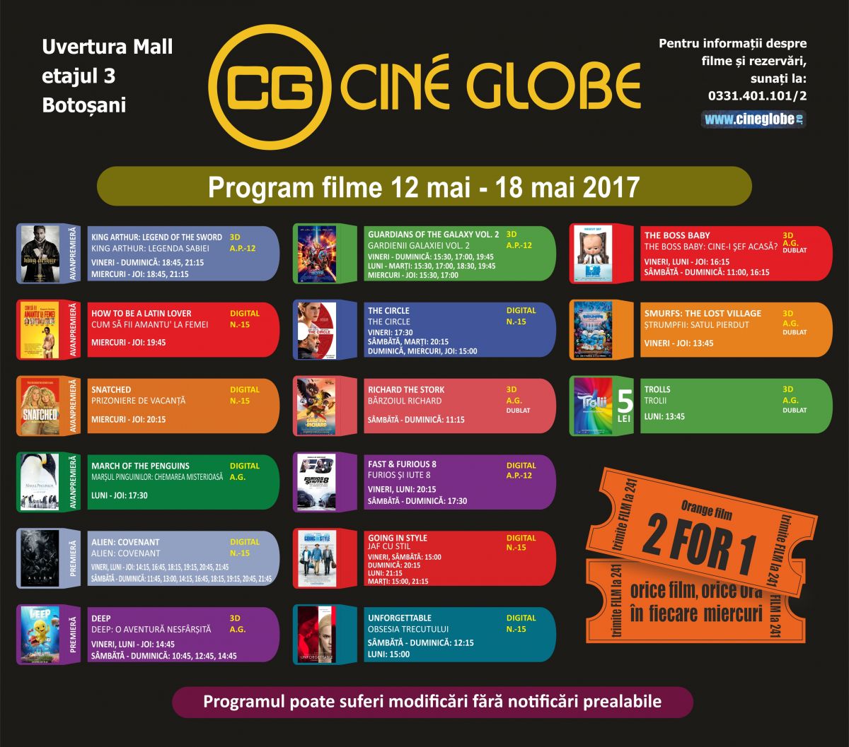 De asemenea în perioada 12 mai - 18 mai 2017, iubitorii de film de la Botoşani, pot vedea tot în avanpremieră King Arthur: Legend of the Sword (King Arthur: Legenda sabiei) în regia lui Guy Ritchie cu actorii Charlie Hunnam, Jude Law, Eric Bana, Djimon Hounsou.