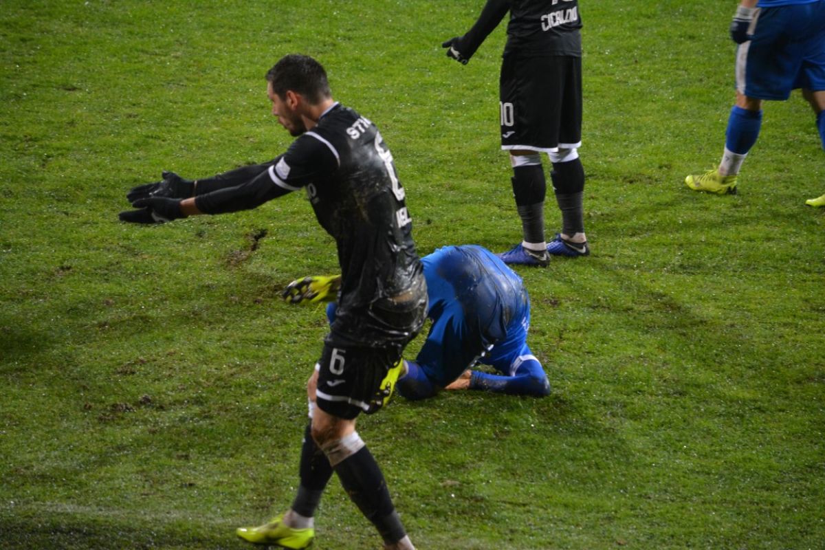 Jucătorii au făcut mari eforturi mai întâi pentru a-şi păstra echilibru şi mai apoi pentru a juca şi fotbal. A rezultat o luptă extraordinară în care echipa cu atitudine şi determinare superioare a învins prin două goluri de poveste: Fabbrini şut în vinclu din marginea careului şi Fulop cu capul după o „rabona” a lui Roman.