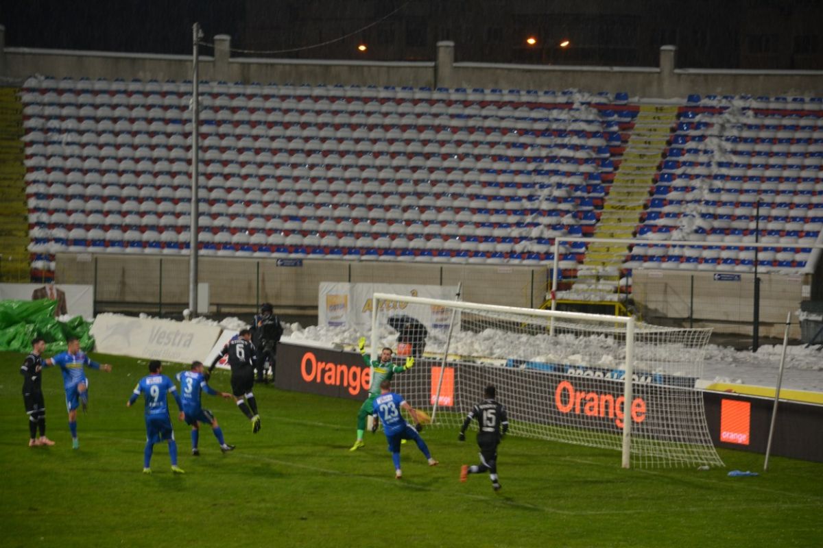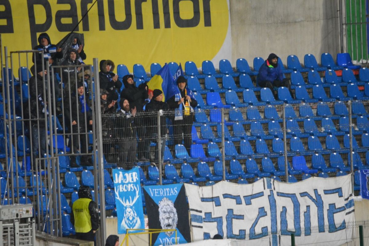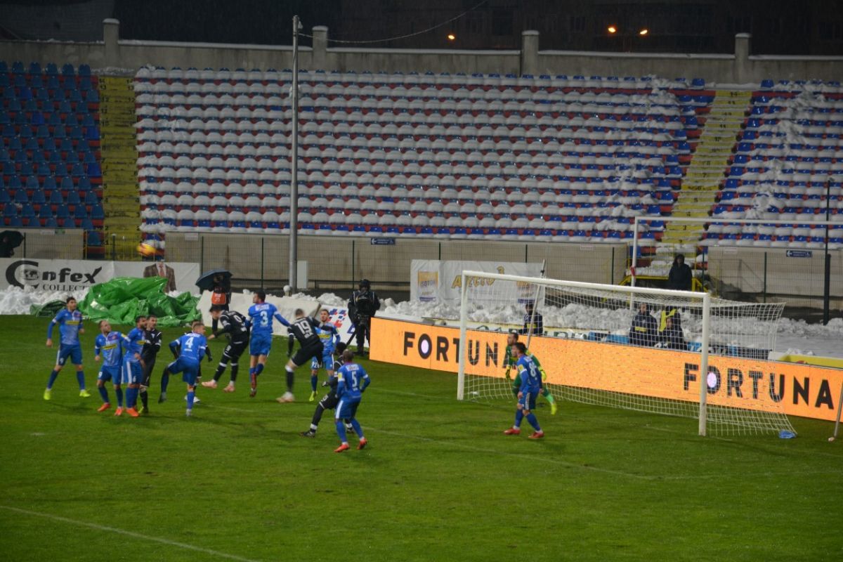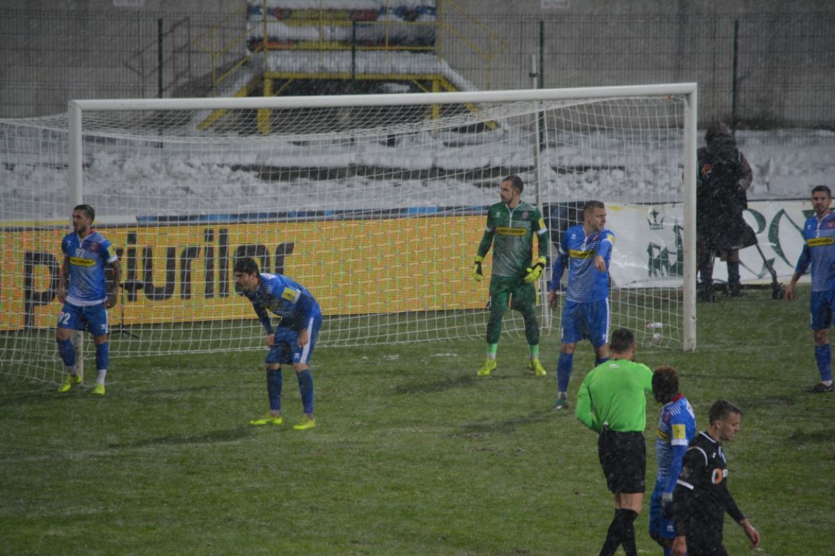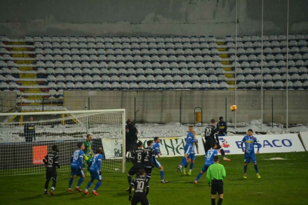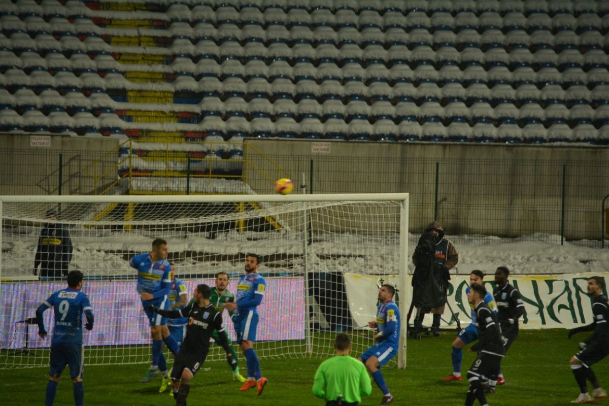 Au fost doar vreo 500 de oameni pe Stadionul Municipal, unde de altfel doar din tribune s-a degajat zăpada, peluzele fiind în mare parte albe. Cu excepţia câtorva locuri la peluza Ion Bordeanu şi a sectorului rezervat oaspeţilor, 15 fani ai oltenilor venind de la celălalt capăt al ţării pentru a-şi susţine favoriţii.