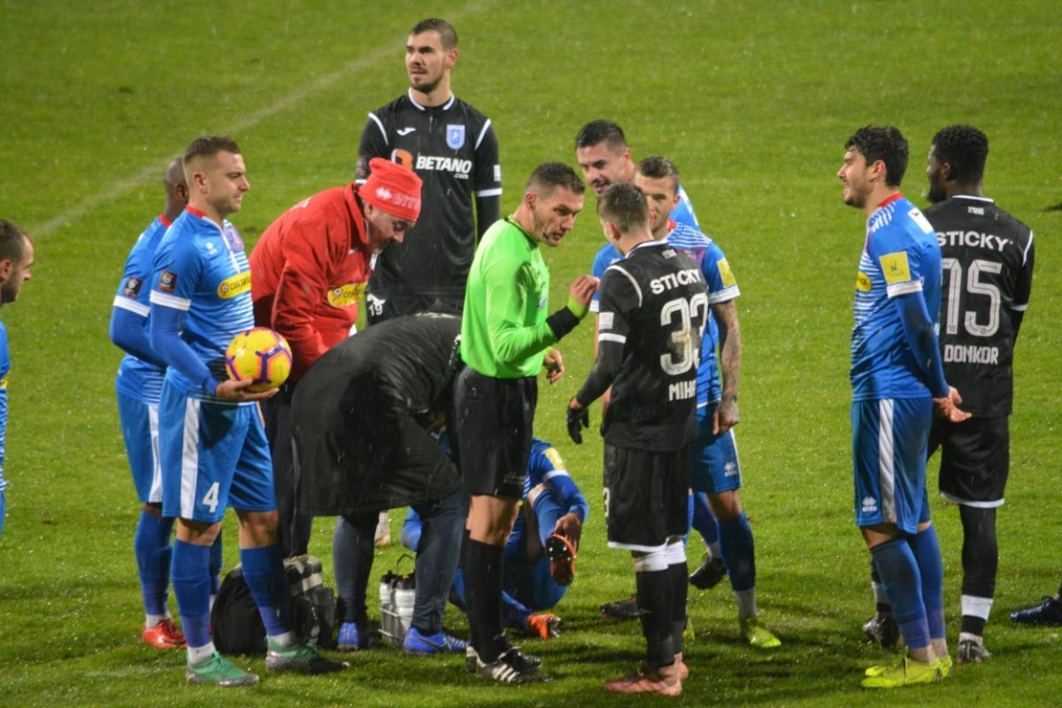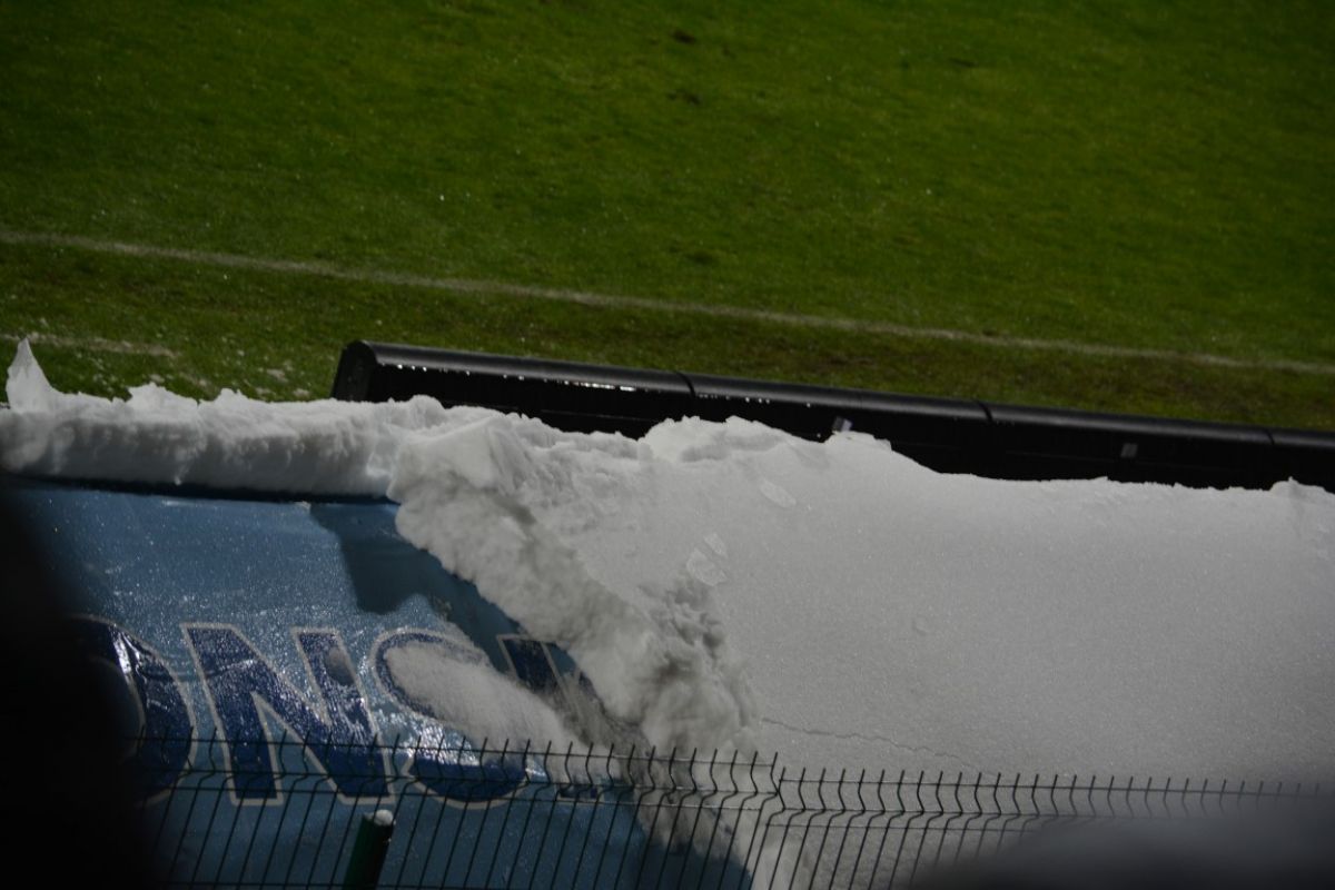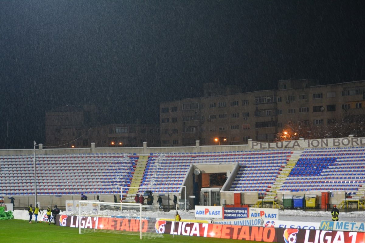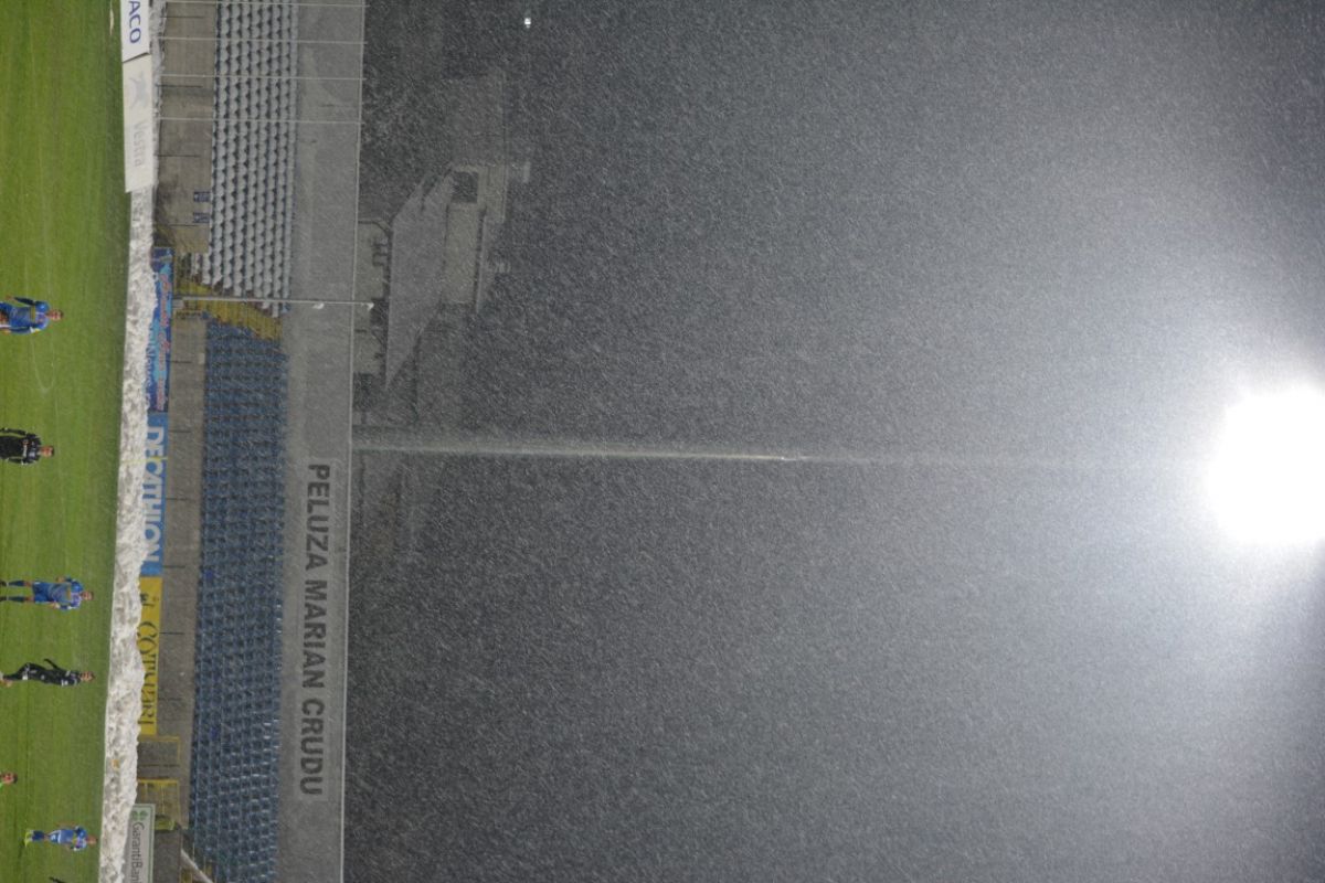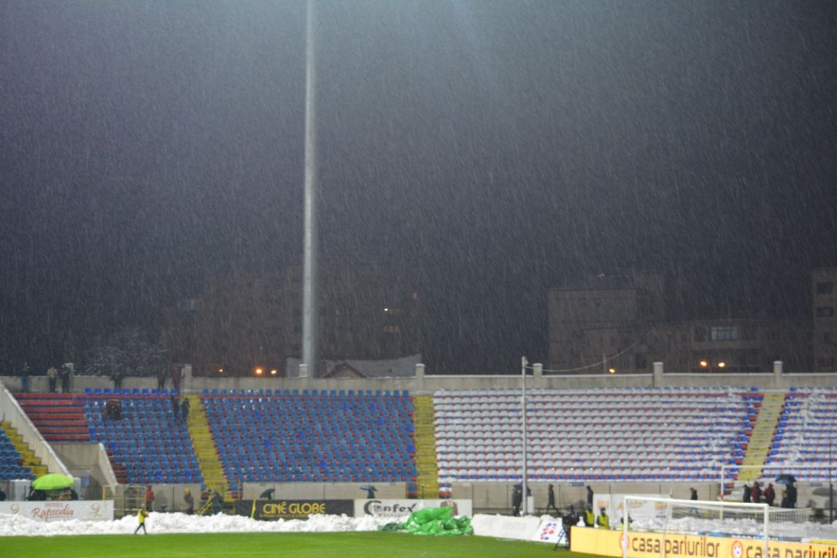 S-a desfăşurat într-o zi de luni, de la 20:30, oră la care se manifesta lapoviţa. Terenul protejat de prelate încă de duminică s-a transformat treptat într-un patinoar.