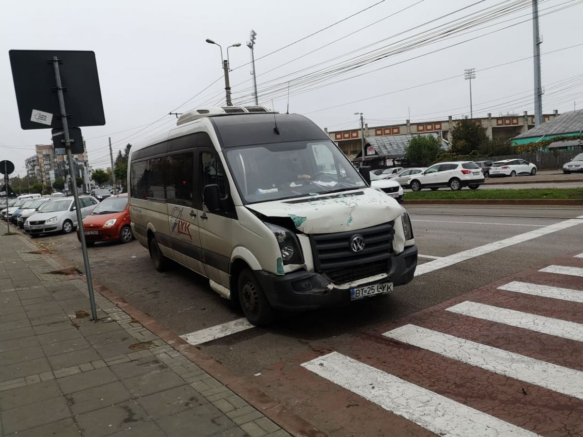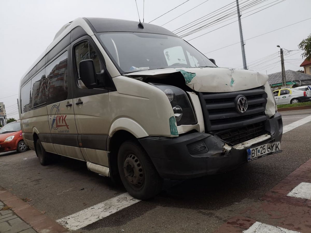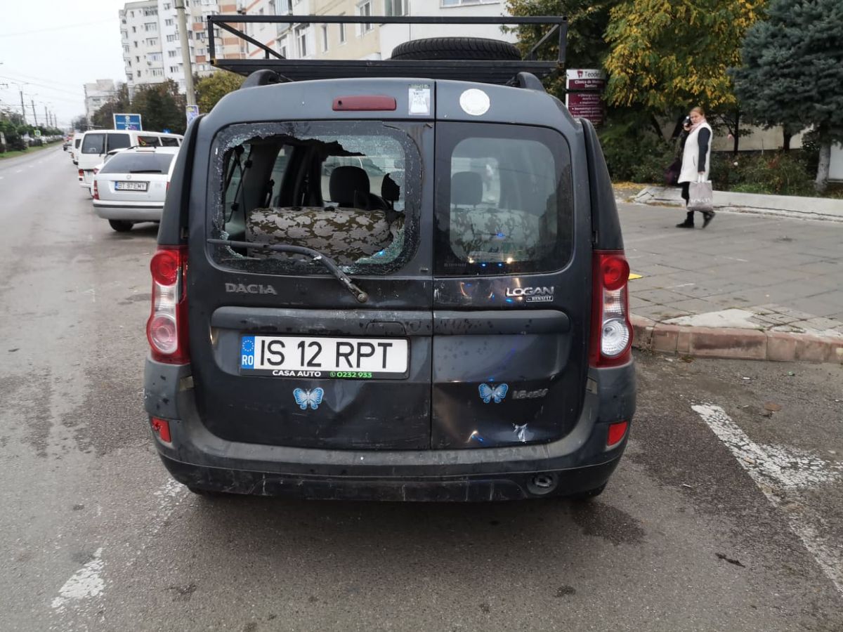O conducătoare auto din Iași, aflată la volanul unei Dacia, a frânat brusc, fiindcă un pieton s-a angajat în traversarea străzii în pas alergător. Șoferul din microbuzul firmei Lyk a fost surprins de manevră și, cu toate că a frânat, nu a putut evita impactul.