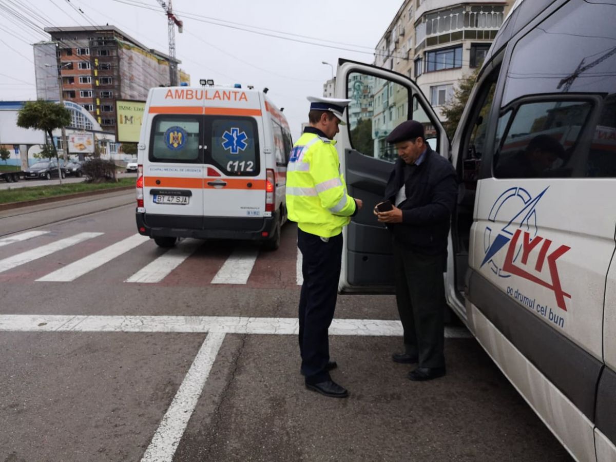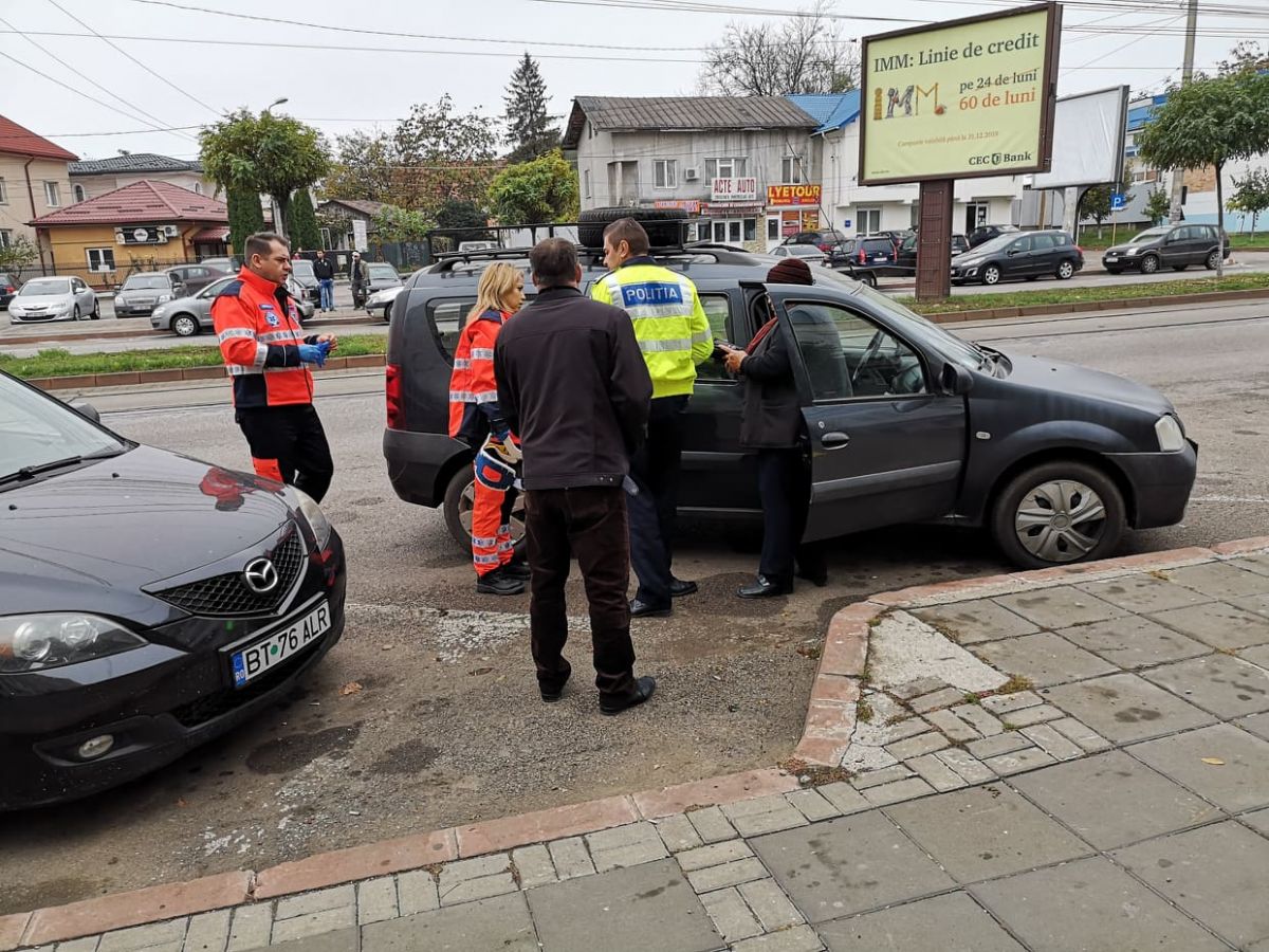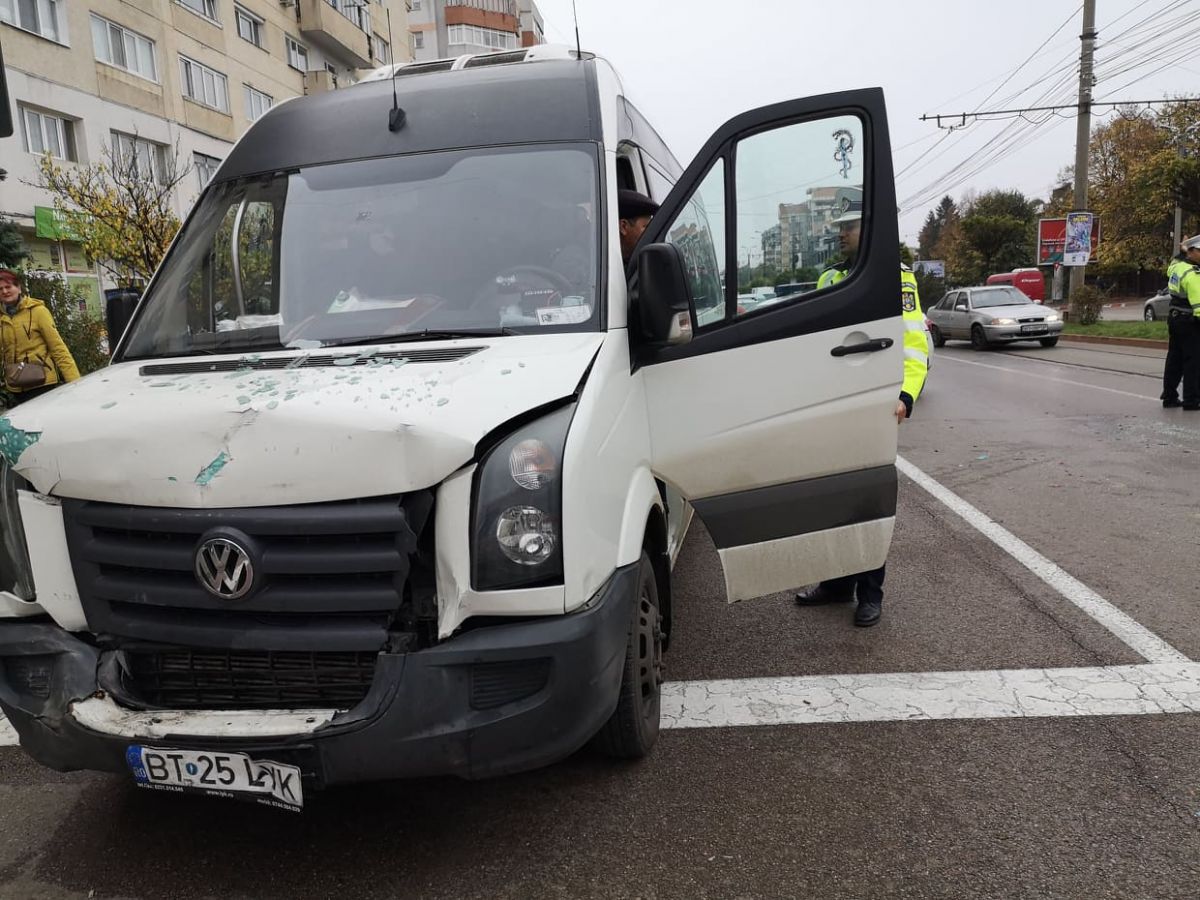 O conducătoare auto din Iași, aflată la volanul unei Dacia, a frânat brusc, fiindcă un pieton s-a angajat în traversarea străzii în pas alergător. Șoferul din microbuzul firmei Lyk a fost surprins de manevră și, cu toate că a frânat, nu a putut evita impactul.