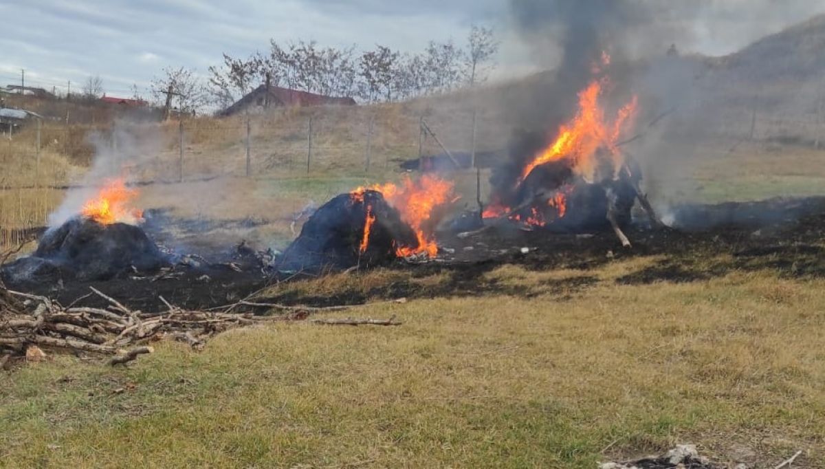 Trei tone de furaje și aproximativ 500 metri pătrați de vegetație uscată au ars, în urmă cu puțin timp, în urma unui incendiu produs pe un teren de pe strada Codrului, din municipiul Botoșani.