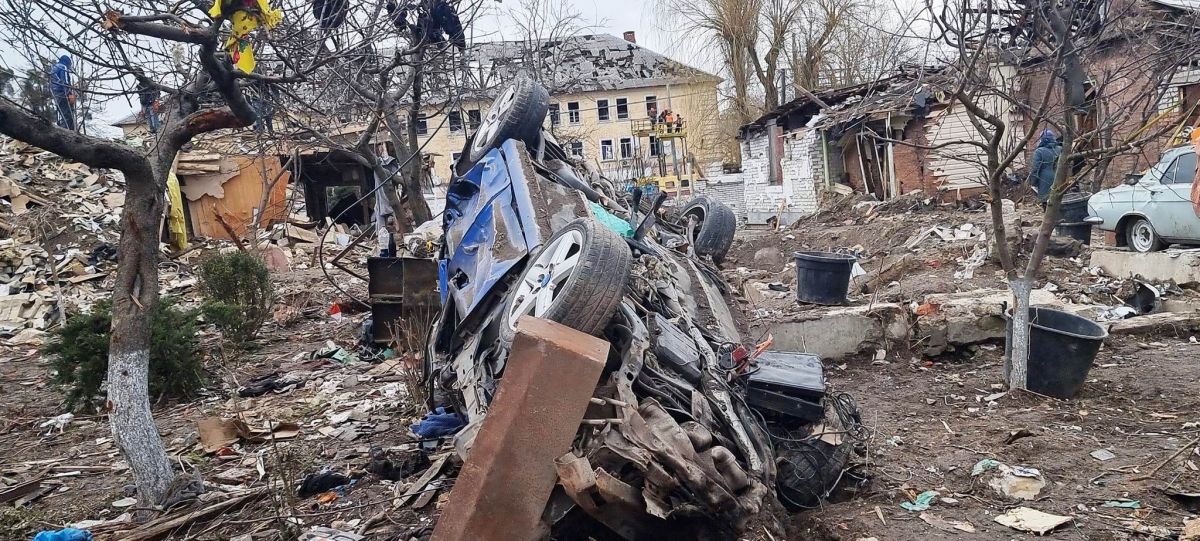 A urcat și mai mult în Ucraina până la Jîtomîr, acolo unde a văzut ororile războiului: o școală din zona centrală a orașului de peste 260.000 de locuitori, reședința regiunii cu același nume, a fost ruinată de atacurile cu rachete alături de un bloc din apropiere. Munți de moloz și o sumedenie de mașini topite au lăsat rușii în urmă.