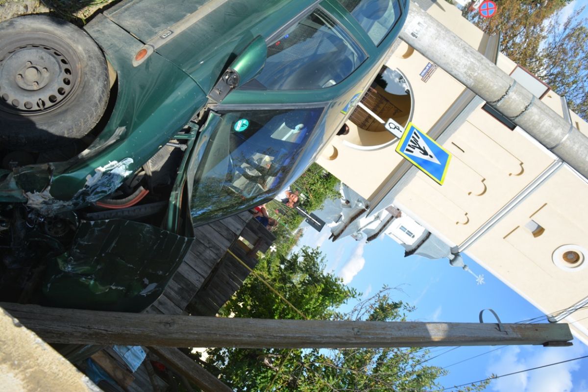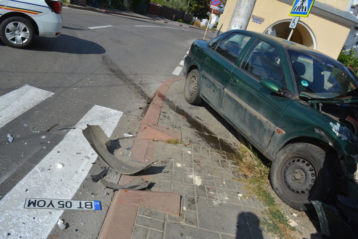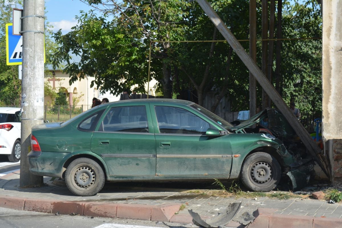 Şoferul maşinii din urmă nu a acordat prioritate şi pentru a minimiza impactul, conducătorul auto din Opel a tras stânga de volan.