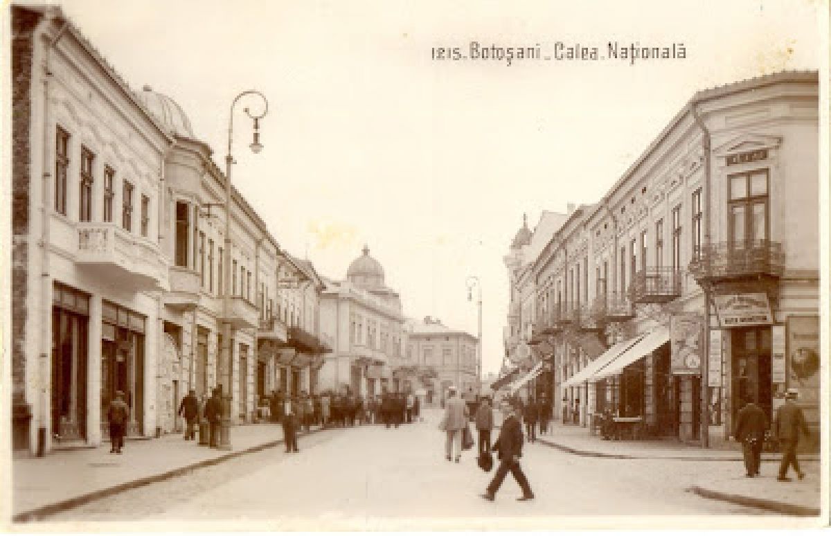 Fotografiile ilustrând cadre variate de pe Calea Națională (cu denumirea ”Ulița veche” într-un document din 1766) denotă efervescența vieții publice și economice a botoșănenilor de altădată.