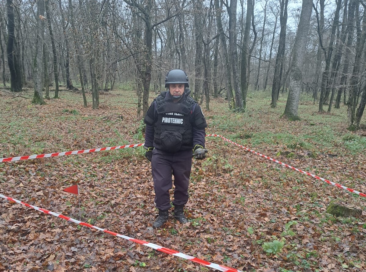 Un element de muniție rămas neexplodat din timpul conflictelor armate, a fost descoperit, astăzi, într-o pădure din localitatea Drislea.
