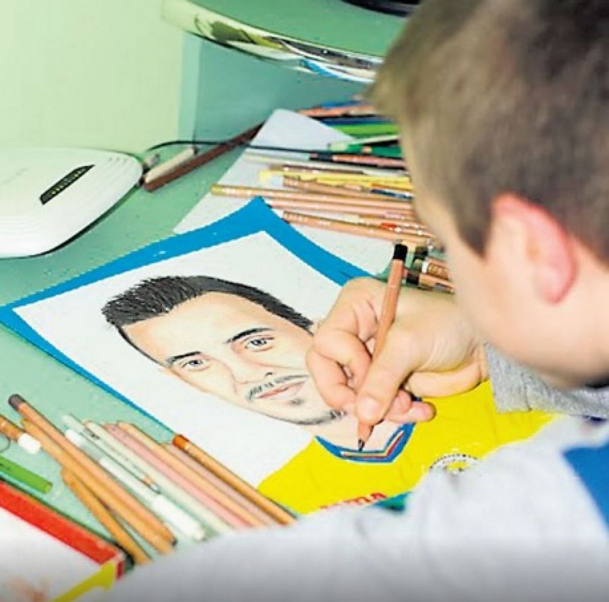 Copilul și-a creat o pagină de facebook pe care afișează portretele realizate: Costache Ionuț Art. A strâns deja peste 12.000 de like-uri și promite să mai lucreze și la alte proiecte sportive.