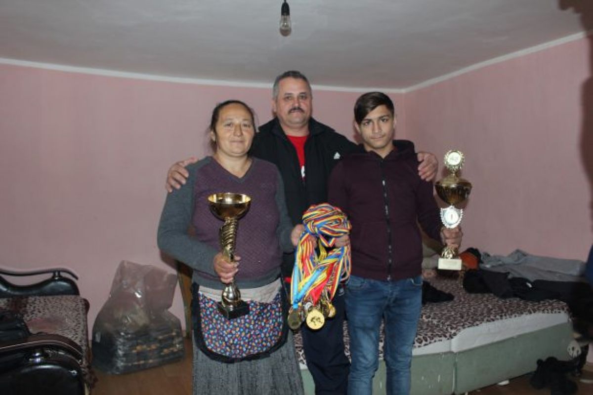 „A mers la şcoală, a învăţat…E ambiţios! L-am învăţat numai de bine şi el a înţeles, a stat departe de prostii. I-am şi spus că, dacă vreodată îl văd că fumează, că bea, că se droghează sau că face alte prostii îl trimit de acasă, nu-l mai primesc”, spune tanti Viorica, strângându-şi la piept campionul.
