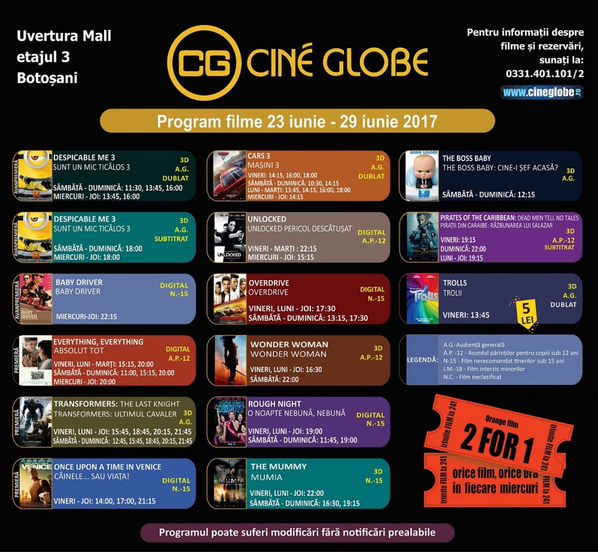 Botoșănenii iubitori de film se pot delecta în perioada 23 iunie – 29 iunie la Cine Globe, din incinta Uvertura Mall, cu noi pelicule pline de aventură, care vor fi proiectate în avanpremieră.